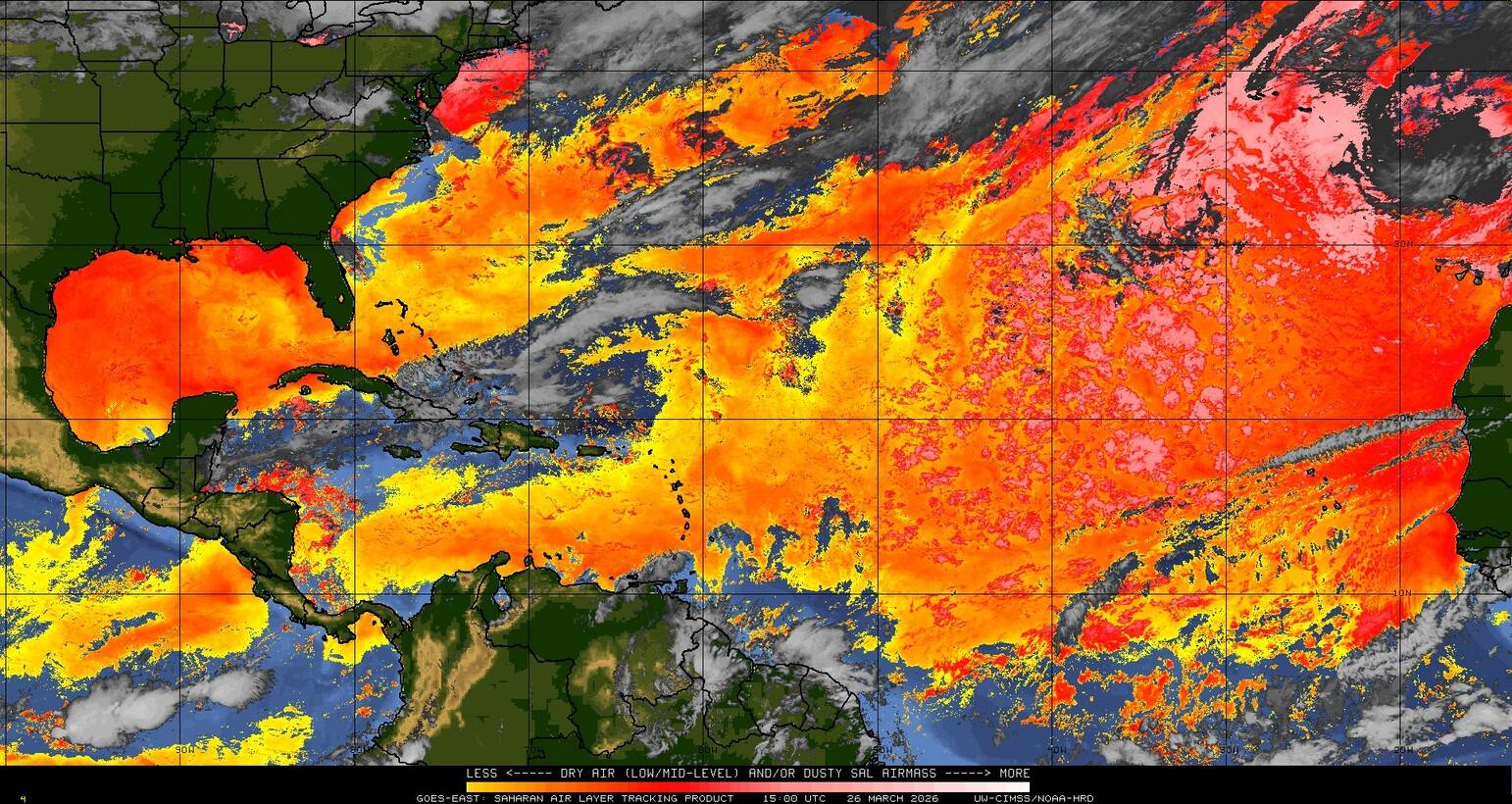 Il n’y a pas de cyclone ni de système surveillé par le NHC en Atlantique. Nous ne sommes pas actuellement en période cyclonique