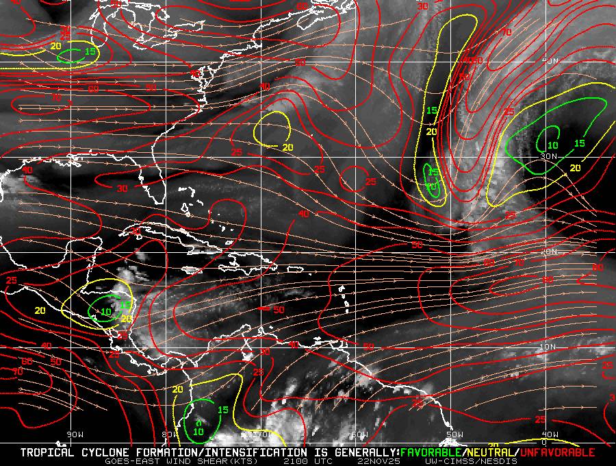 Il n’y a pas de cyclone ni de système surveillé par le NHC en Atlantique.