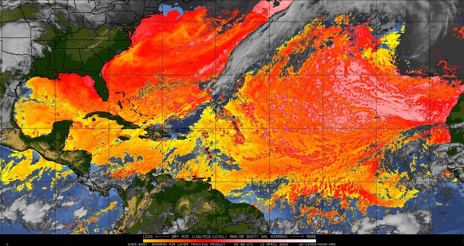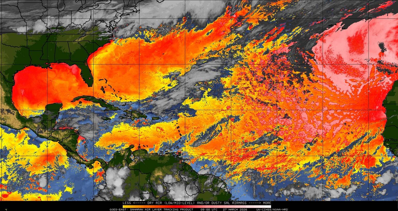 Il n’y a pas de cyclone ni de système surveillé par le NHC en Atlantique. Nous ne sommes pas actuellement en période cyclonique