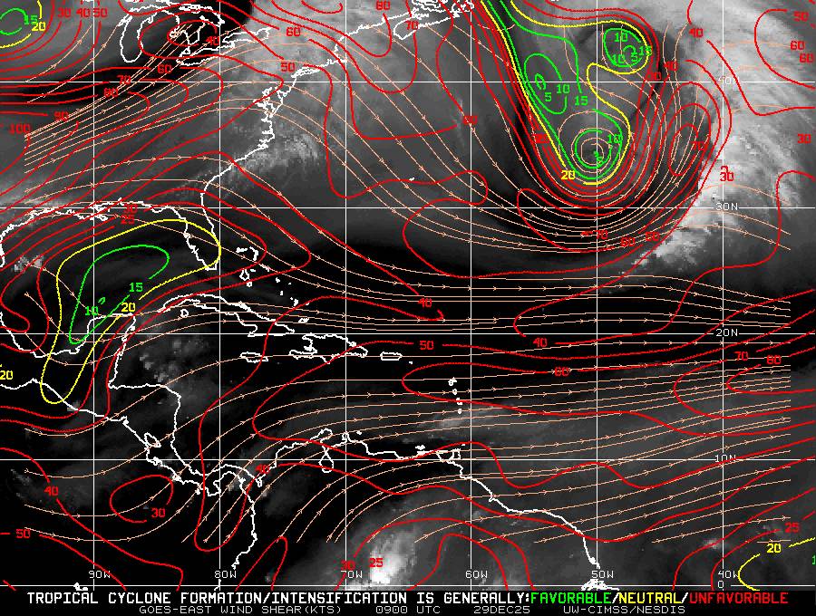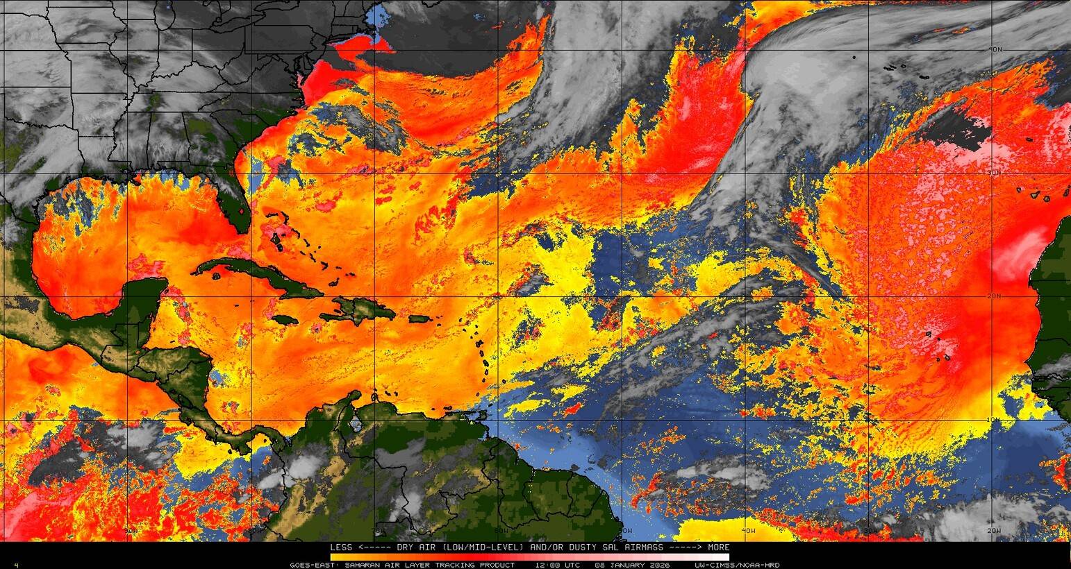 Il n’y a pas de cyclone ni de système surveillé par le NHC en Atlantique. Nous ne sommes pas actuellement en période cyclonique