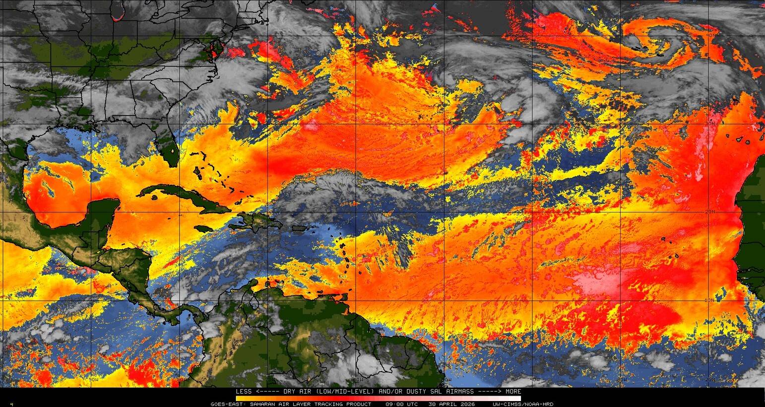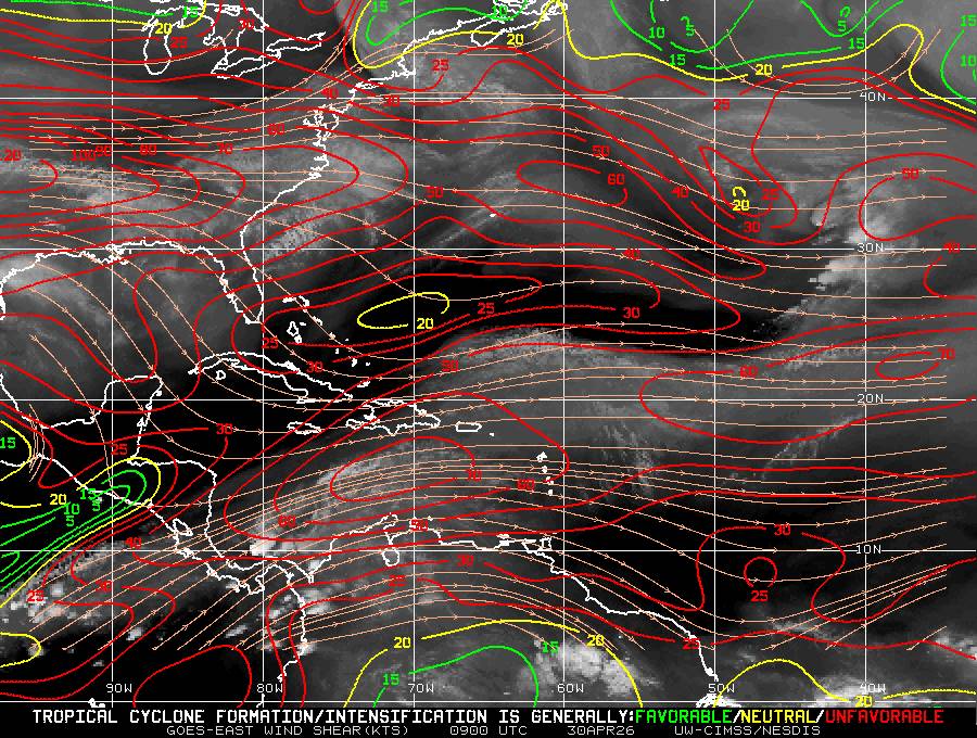 Il n’y a pas de cyclone ni de système surveillé par le NHC en Atlantique. Nous ne sommes pas actuellement en période cyclonique