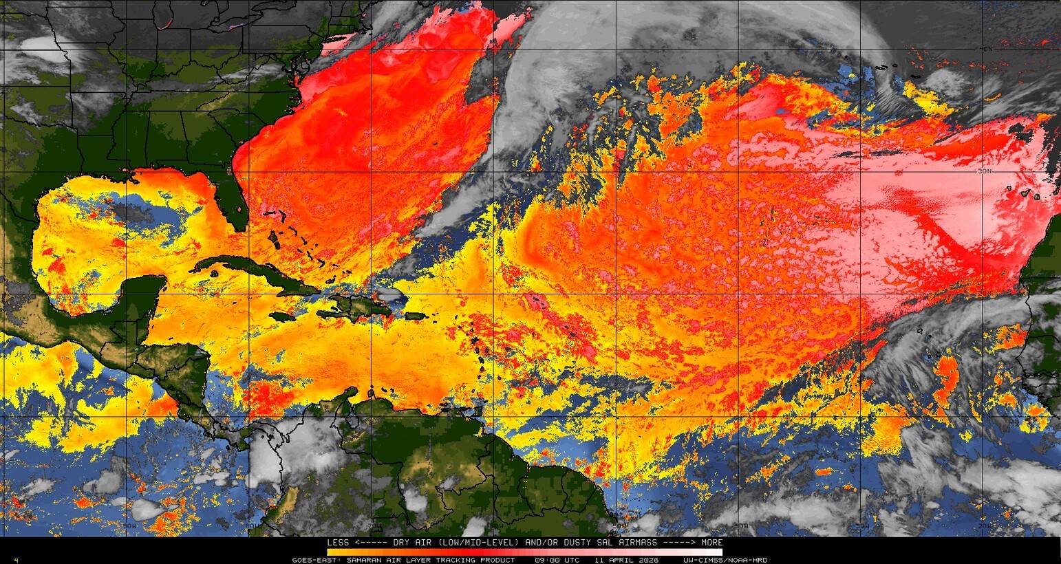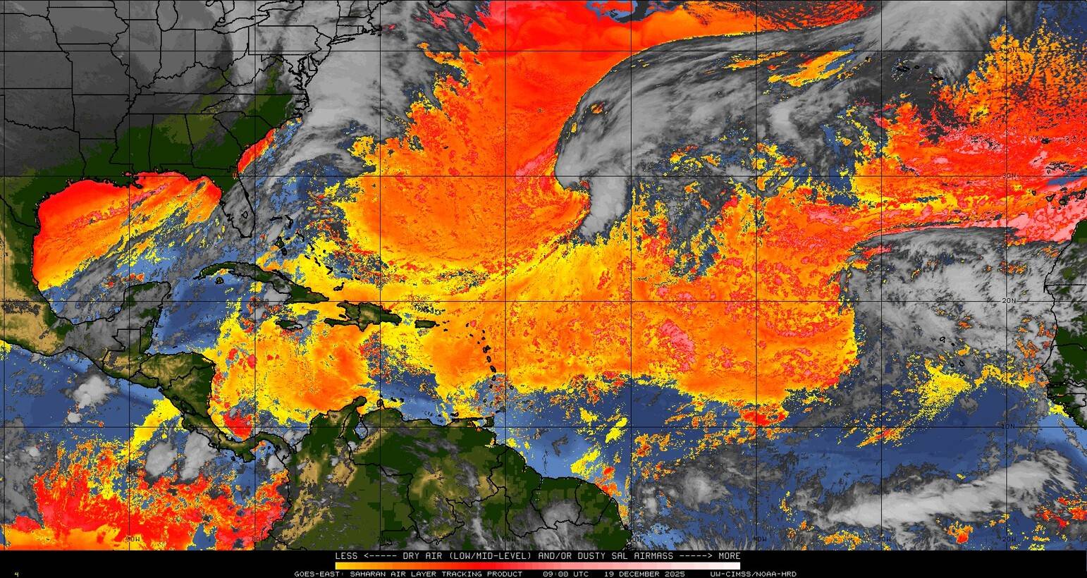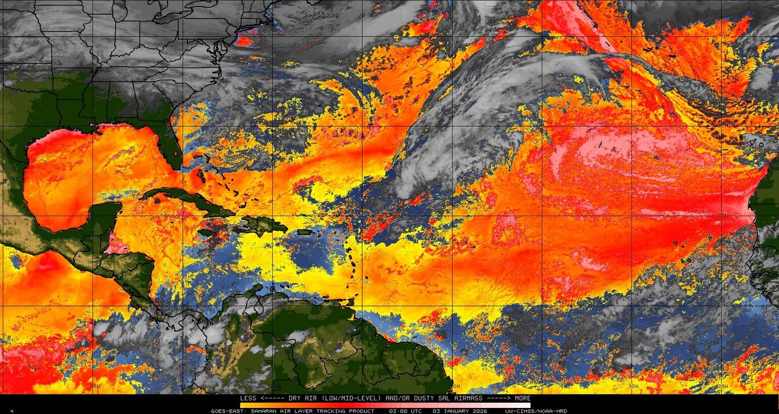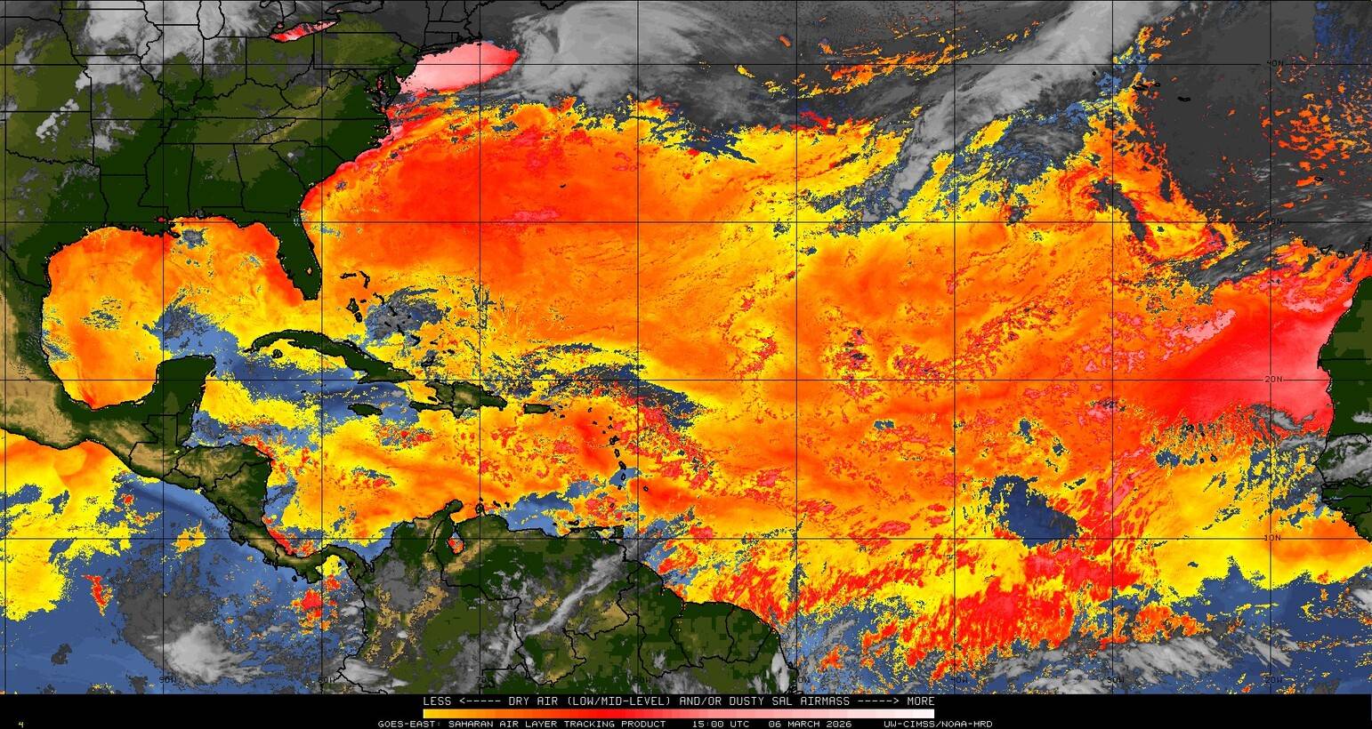 Il n’y a pas de cyclone ni de système surveillé par le NHC en Atlantique. Nous ne sommes pas actuellement en période cyclonique