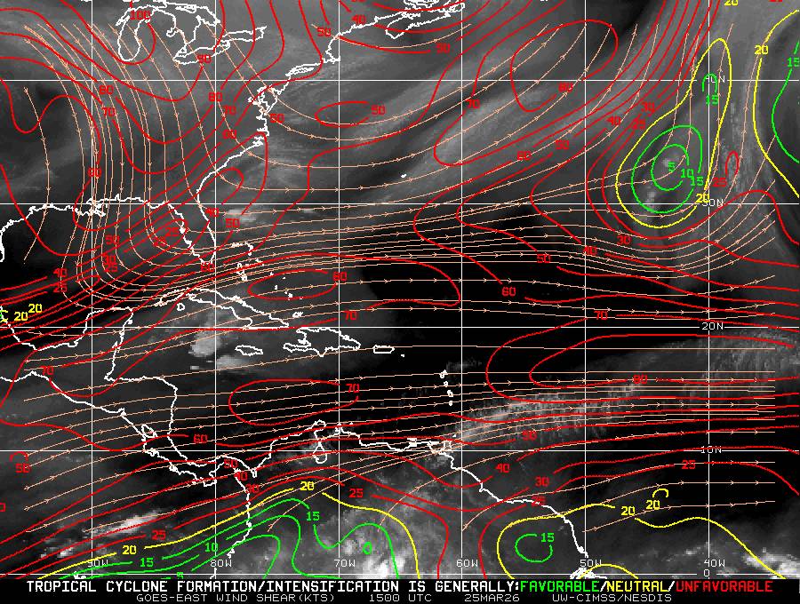 Il n’y a pas de cyclone ni de système surveillé par le NHC en Atlantique. Nous ne sommes pas actuellement en période cyclonique