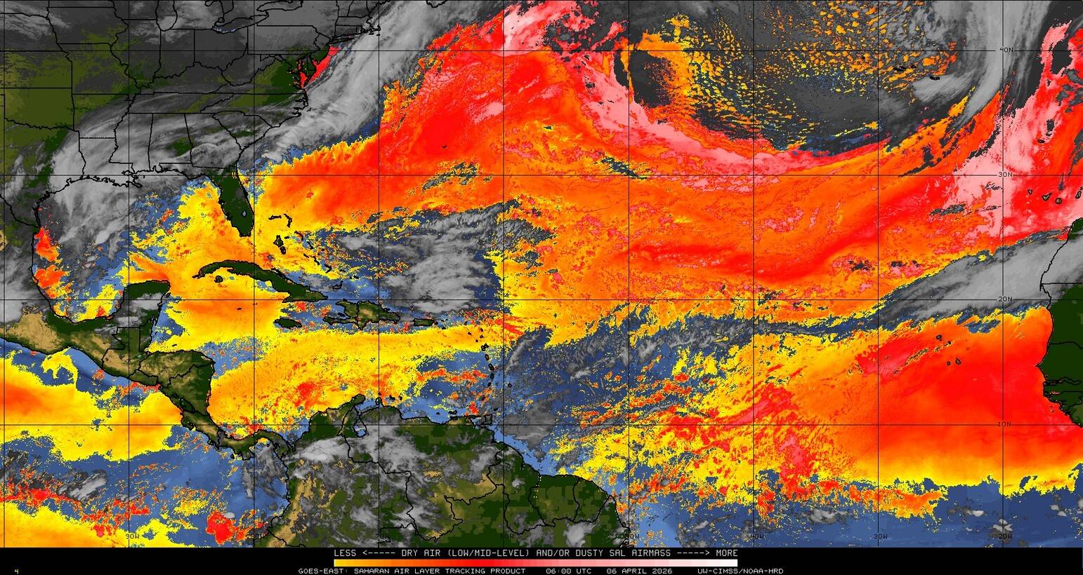 Il n’y a pas de cyclone ni de système surveillé par le NHC en Atlantique. Nous ne sommes pas actuellement en période cyclonique