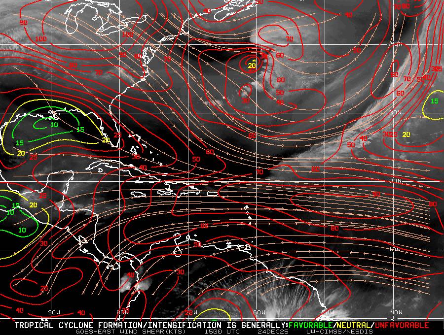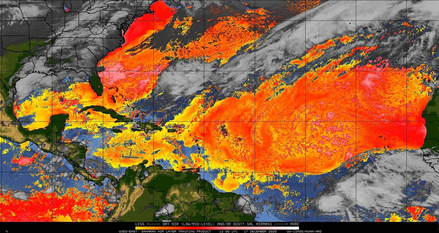 Il n’y a pas de cyclone ni de système surveillé par le NHC en Atlantique. Nous ne sommes pas actuellement en période cyclonique