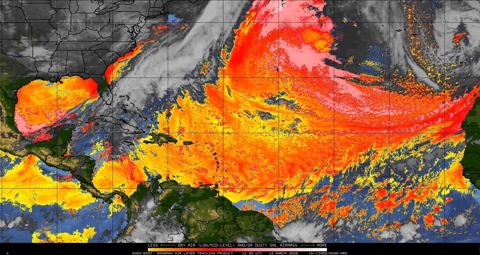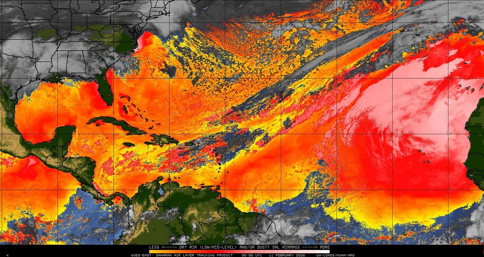 Il n’y a pas de cyclone ni de système surveillé par le NHC en Atlantique. Nous ne sommes pas actuellement en période cyclonique