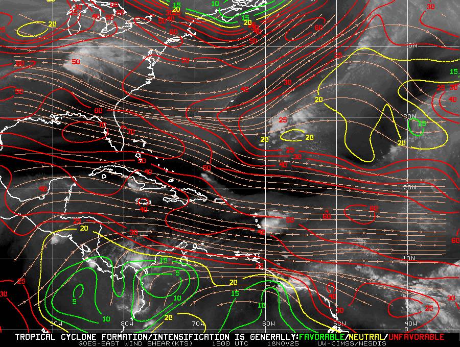 Il n’y a pas de cyclone ni de système surveillé par le NHC en Atlantique.