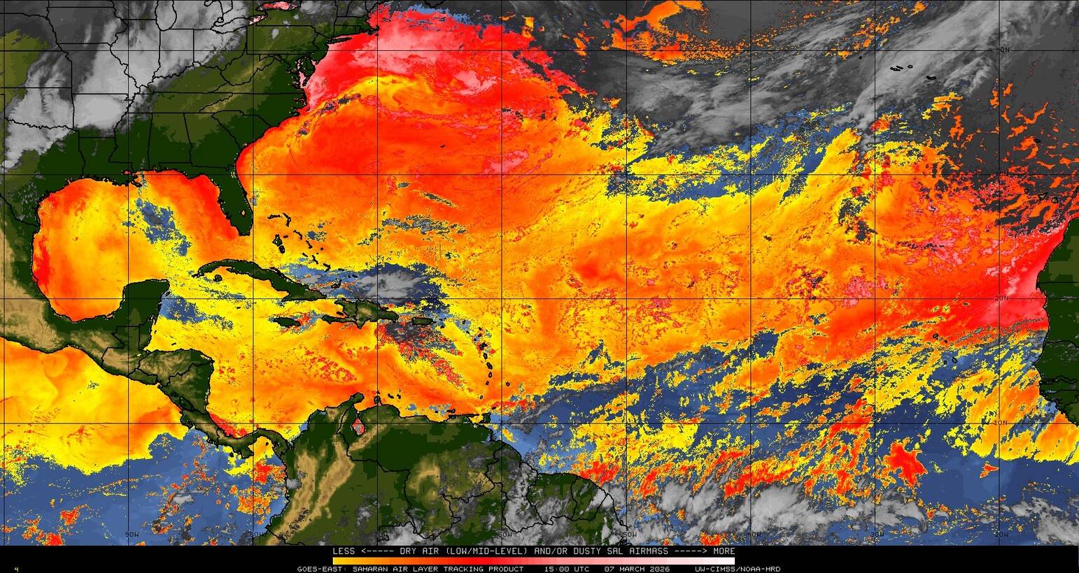 Il n’y a pas de cyclone ni de système surveillé par le NHC en Atlantique. Nous ne sommes pas actuellement en période cyclonique