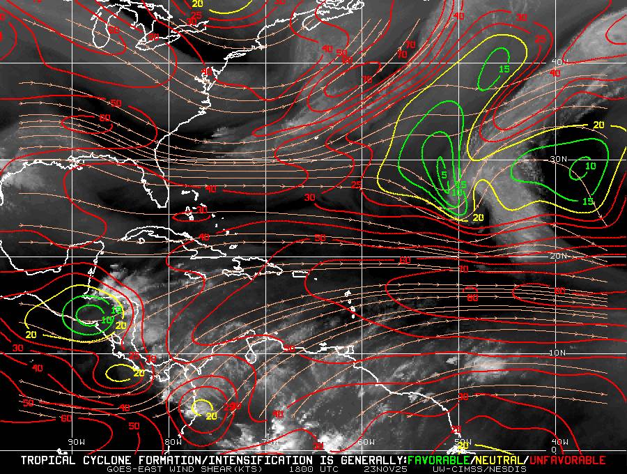 Il n’y a pas de cyclone ni de système surveillé par le NHC en Atlantique.