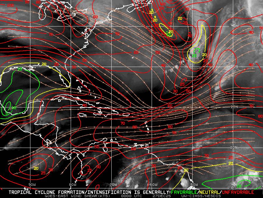 Il n’y a pas de cyclone ni de système surveillé par le NHC en Atlantique. Nous ne sommes pas actuellement en période cyclonique