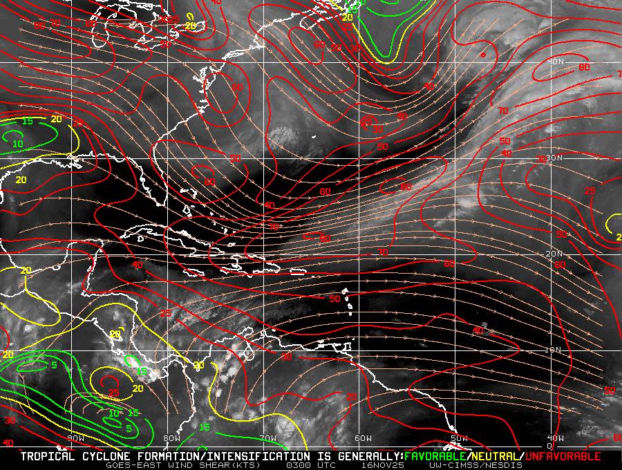 Il n’y a pas de cyclone ni de système surveillé par le NHC en Atlantique.