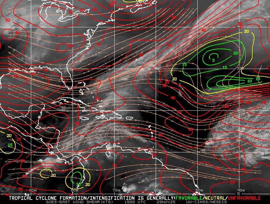 Il n’y a pas de cyclone ni de système surveillé par le NHC en Atlantique.