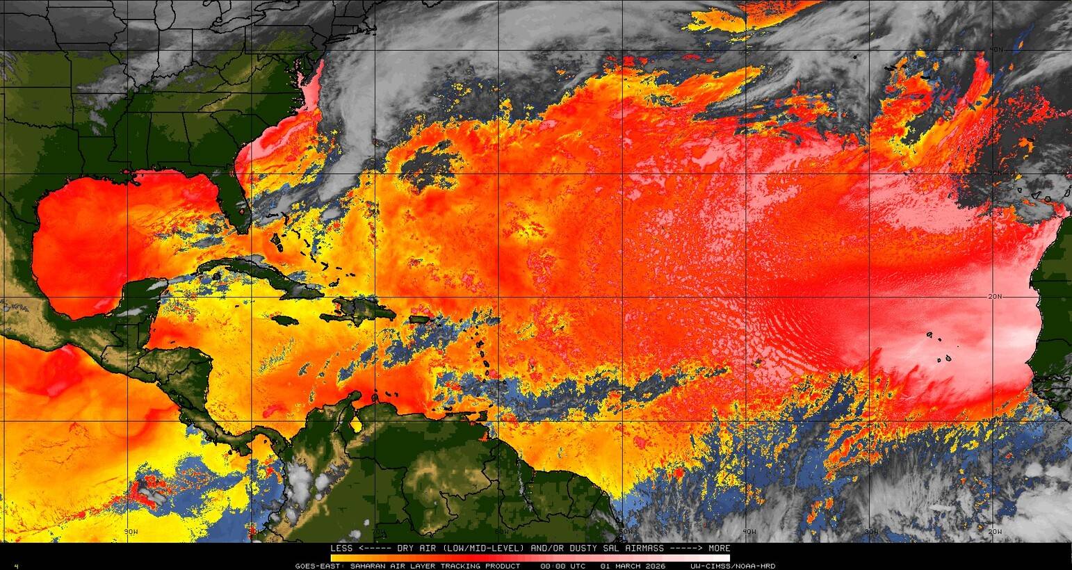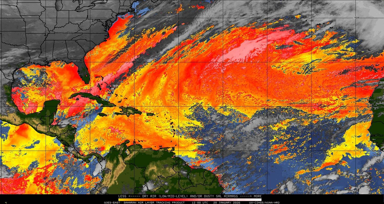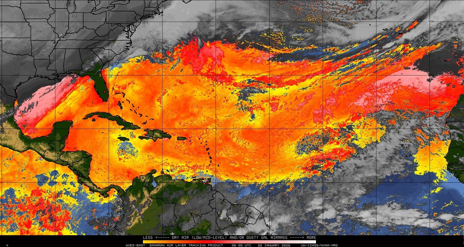 Il n’y a pas de cyclone ni de système surveillé par le NHC en Atlantique. Nous ne sommes pas actuellement en période cyclonique