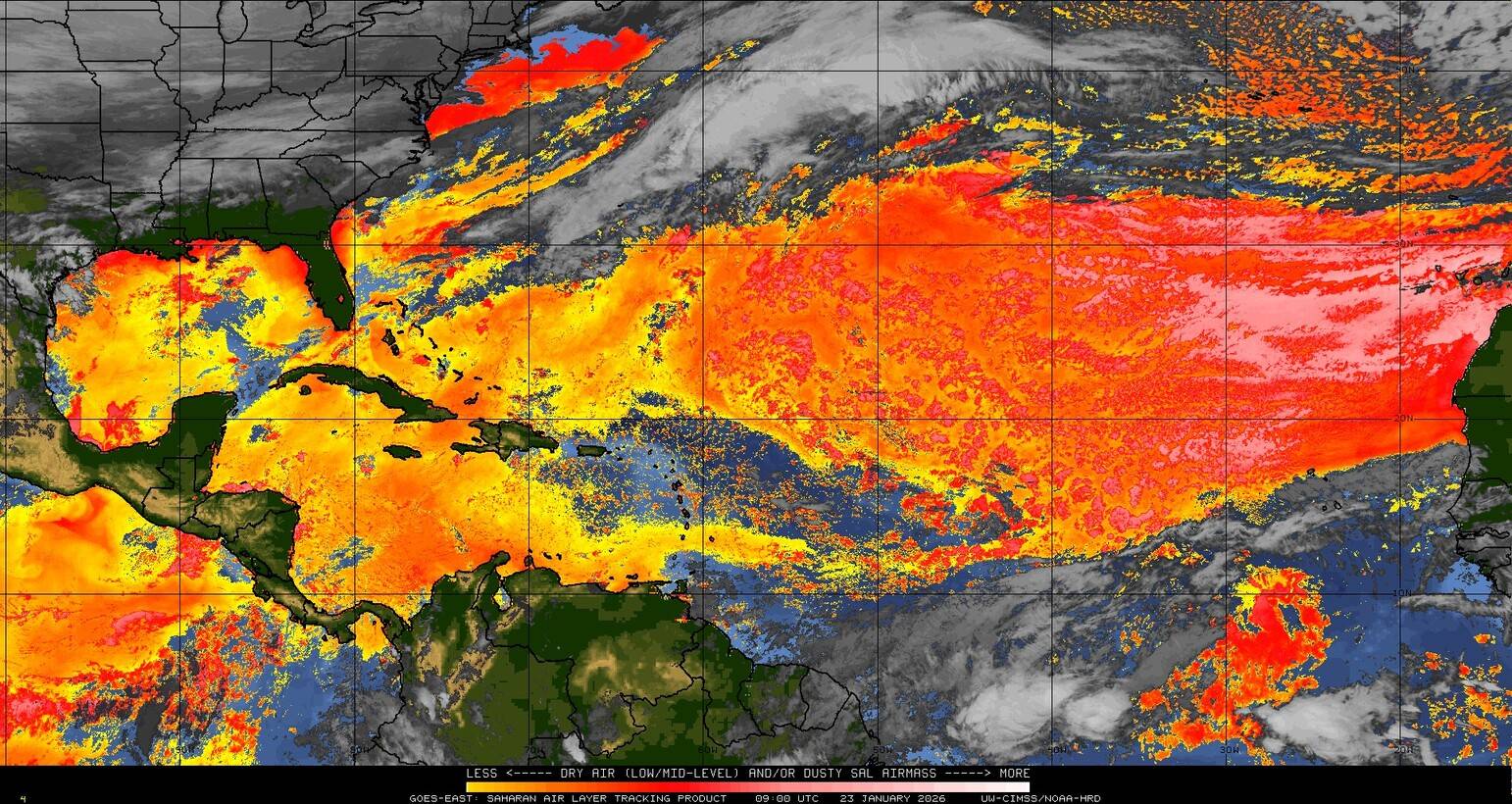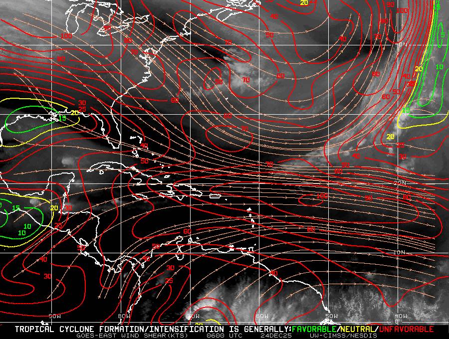 Il n’y a pas de cyclone ni de système surveillé par le NHC en Atlantique. Nous ne sommes pas actuellement en période cyclonique
