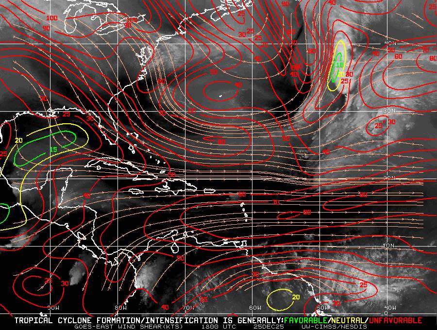 Il n’y a pas de cyclone ni de système surveillé par le NHC en Atlantique. Nous ne sommes pas actuellement en période cyclonique