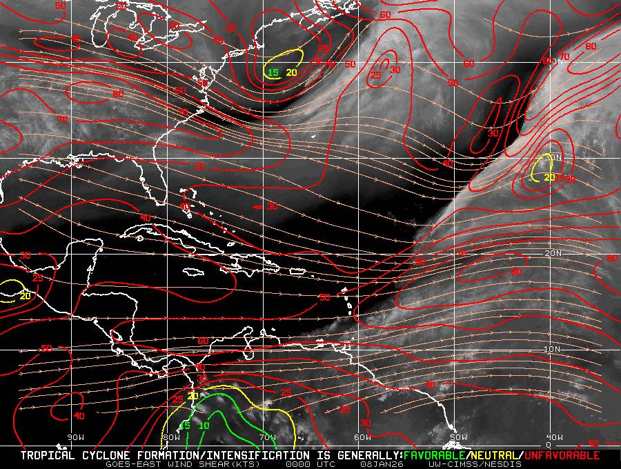 Il n’y a pas de cyclone ni de système surveillé par le NHC en Atlantique. Nous ne sommes pas actuellement en période cyclonique