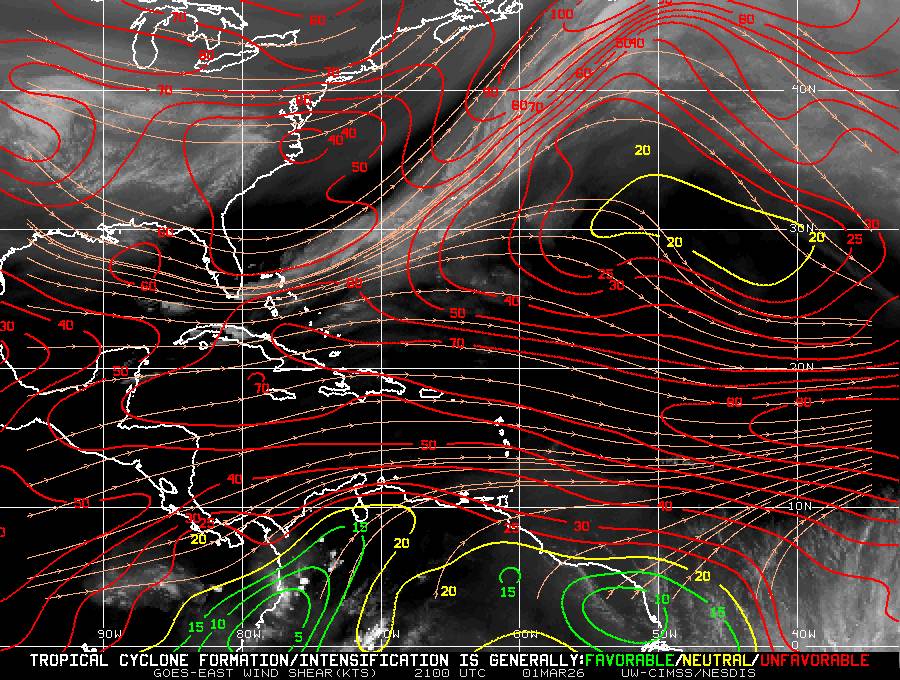 Il n’y a pas de cyclone ni de système surveillé par le NHC en Atlantique. Nous ne sommes pas actuellement en période cyclonique
