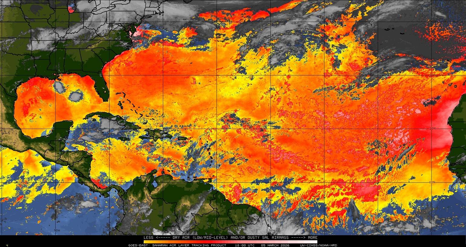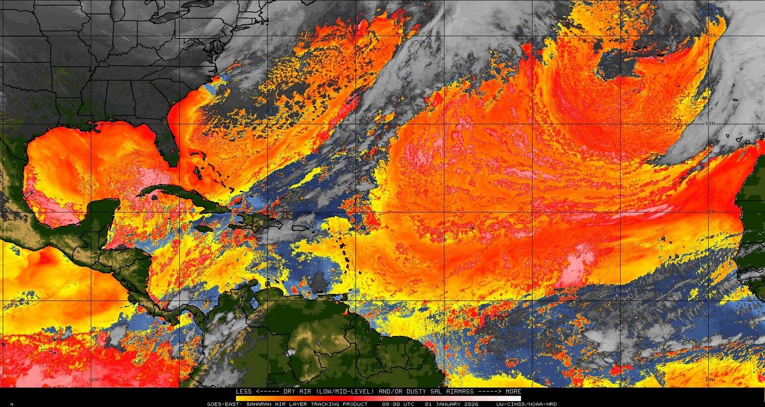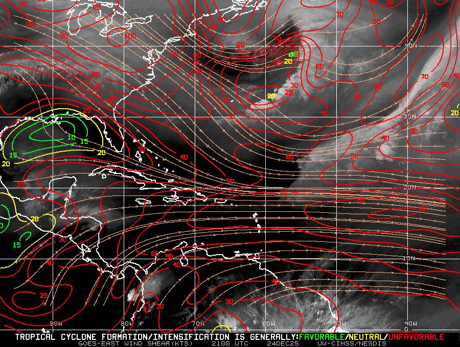 Il n’y a pas de cyclone ni de système surveillé par le NHC en Atlantique. Nous ne sommes pas actuellement en période cyclonique