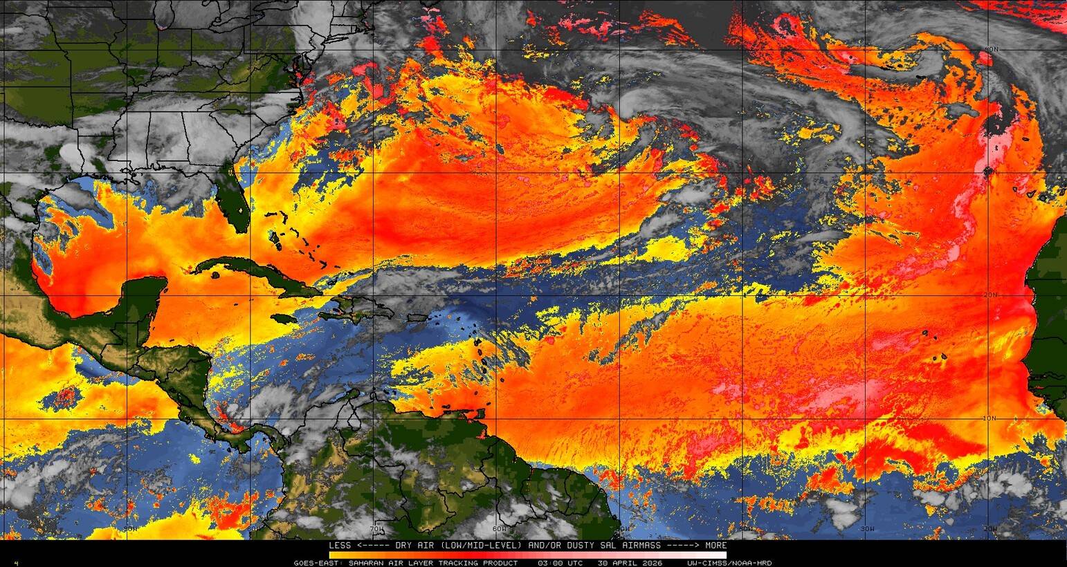 Il n’y a pas de cyclone ni de système surveillé par le NHC en Atlantique. Nous ne sommes pas actuellement en période cyclonique