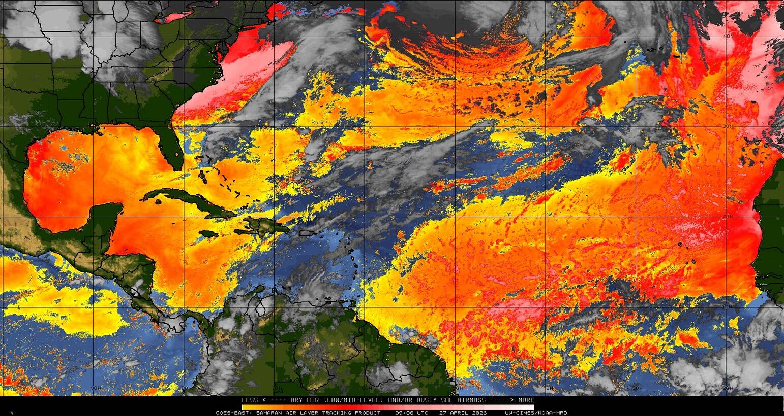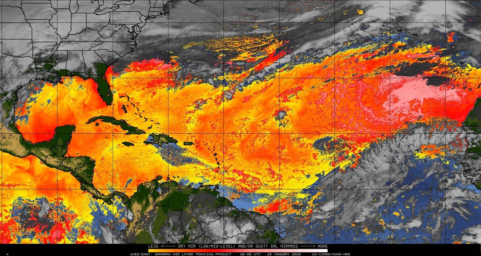 Il n’y a pas de cyclone ni de système surveillé par le NHC en Atlantique. Nous ne sommes pas actuellement en période cyclonique