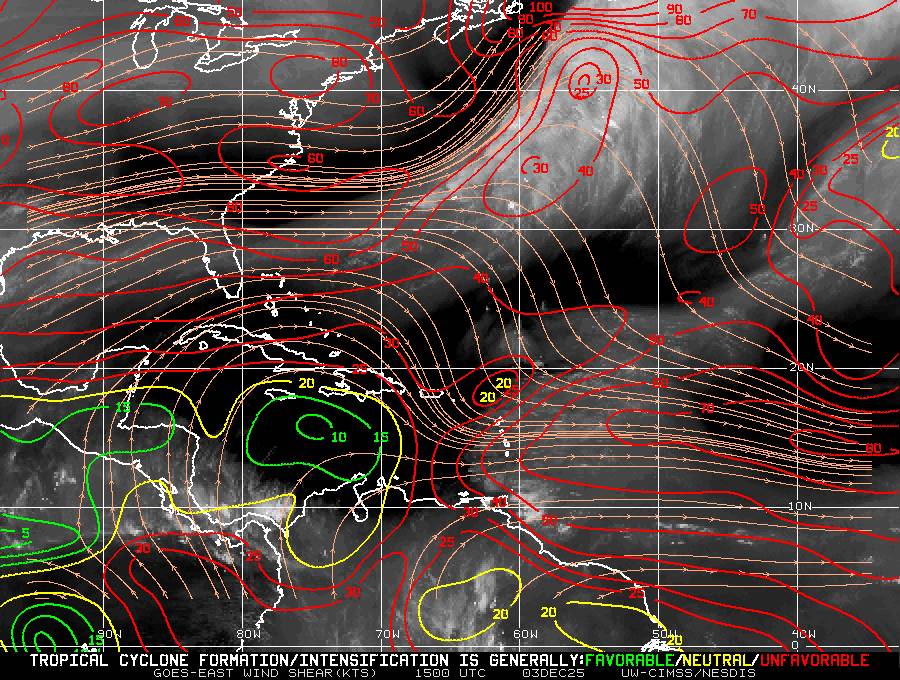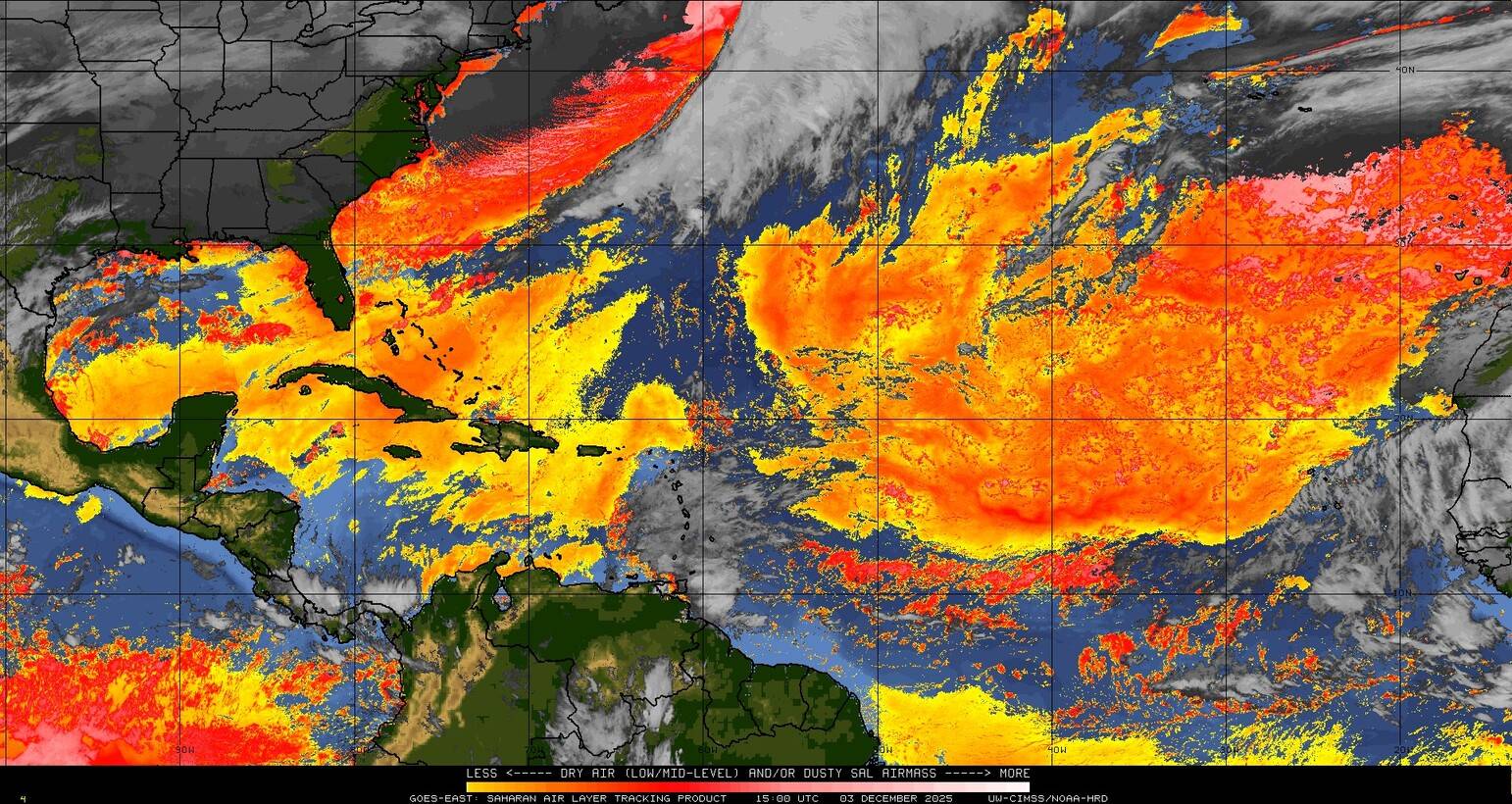 Il n’y a pas de cyclone ni de système surveillé par le NHC en Atlantique. Nous ne sommes pas actuellement en période cyclonique