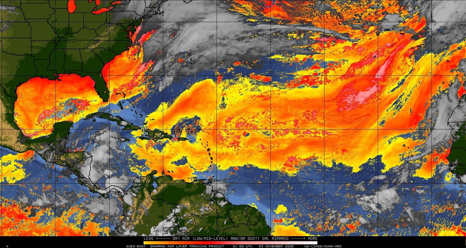 Il n’y a pas de cyclone ni de système surveillé par le NHC en Atlantique.