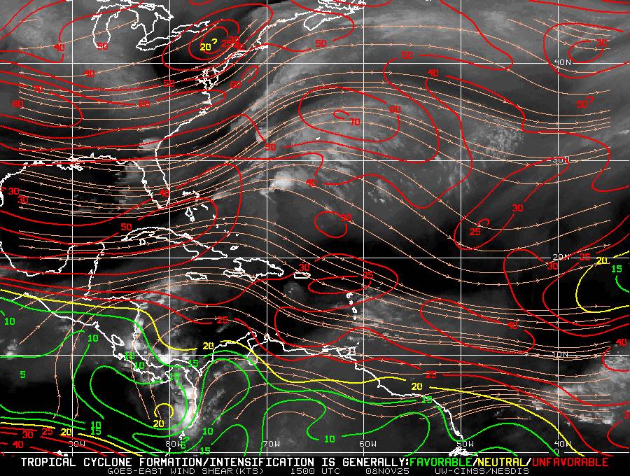 Il n’y a pas de cyclone ni de système surveillé par le NHC en Atlantique.