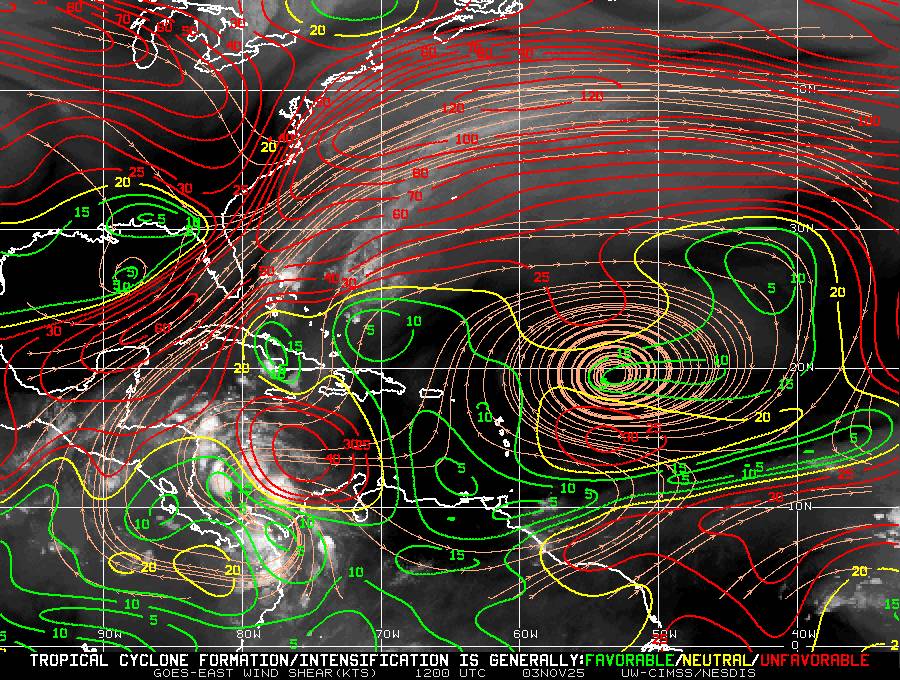 Il n’y a pas de cyclone ni de système surveillé par le NHC en Atlantique.