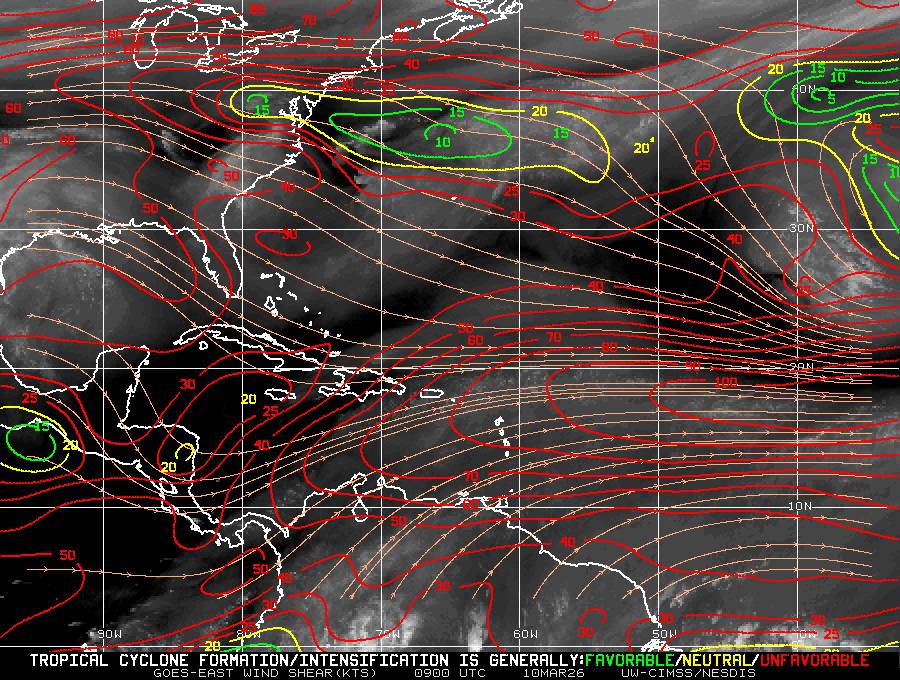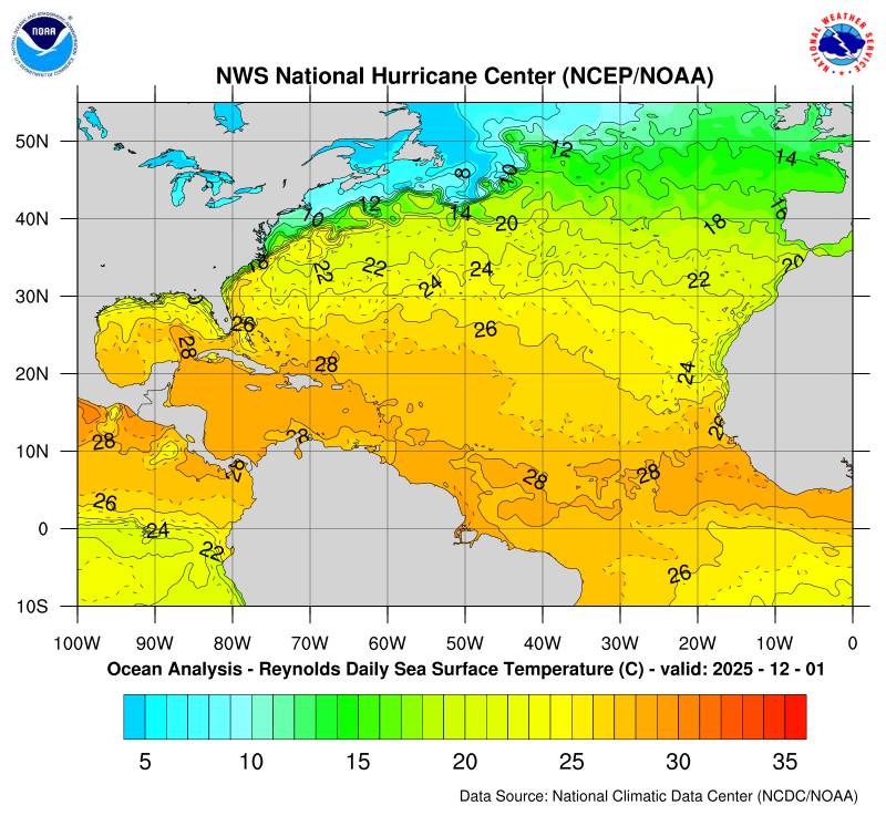 Il n’y a pas de cyclone ni de système surveillé par le NHC en Atlantique. Nous ne sommes pas actuellement en période cyclonique