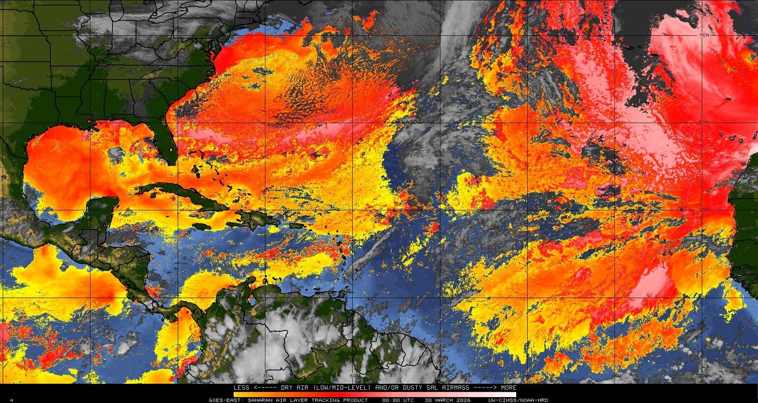 Il n’y a pas de cyclone ni de système surveillé par le NHC en Atlantique. Nous ne sommes pas actuellement en période cyclonique