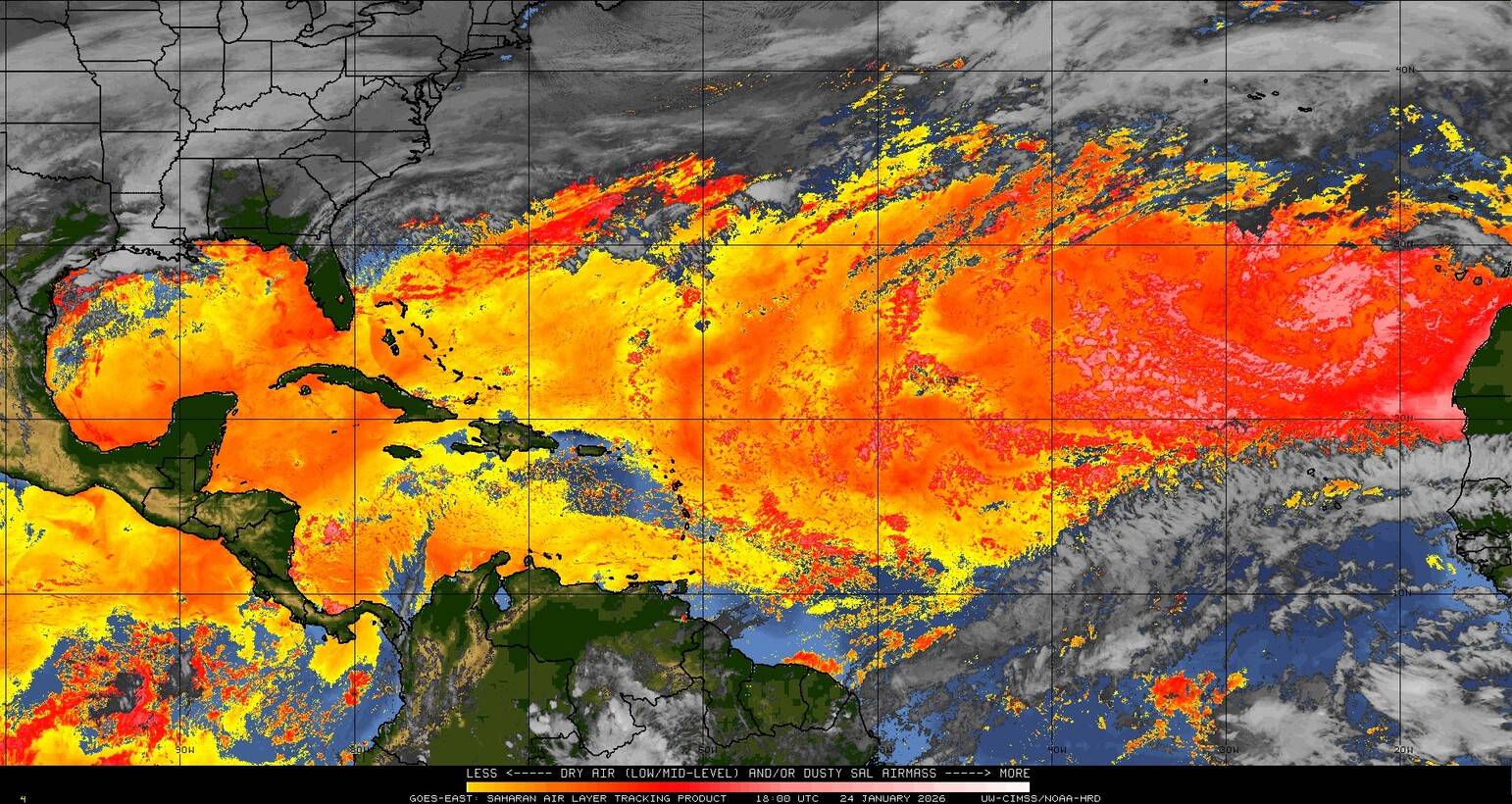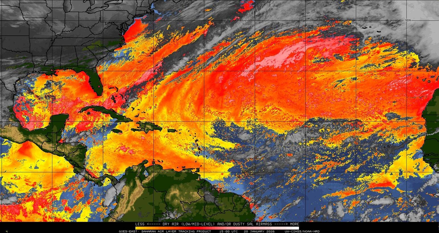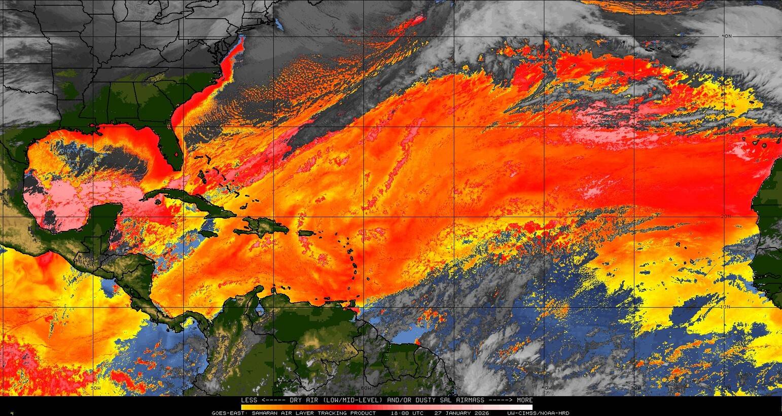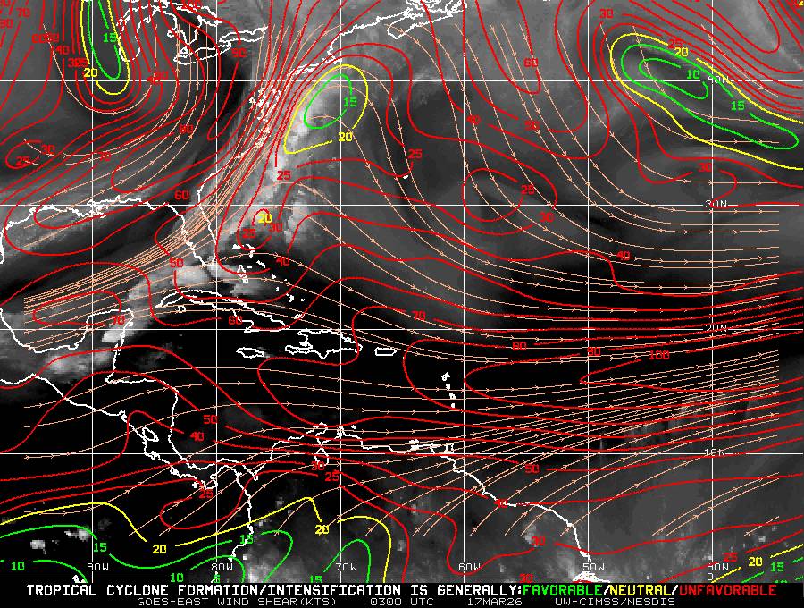 Il n’y a pas de cyclone ni de système surveillé par le NHC en Atlantique. Nous ne sommes pas actuellement en période cyclonique