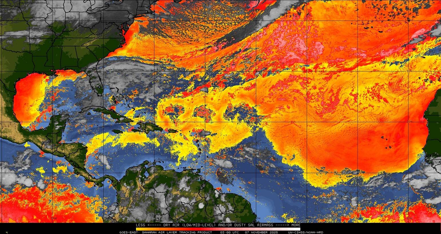 Il n’y a pas de cyclone ni de système surveillé par le NHC en Atlantique.