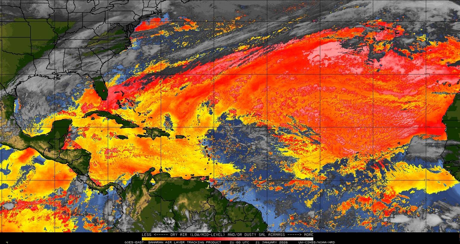 Il n’y a pas de cyclone ni de système surveillé par le NHC en Atlantique. Nous ne sommes pas actuellement en période cyclonique