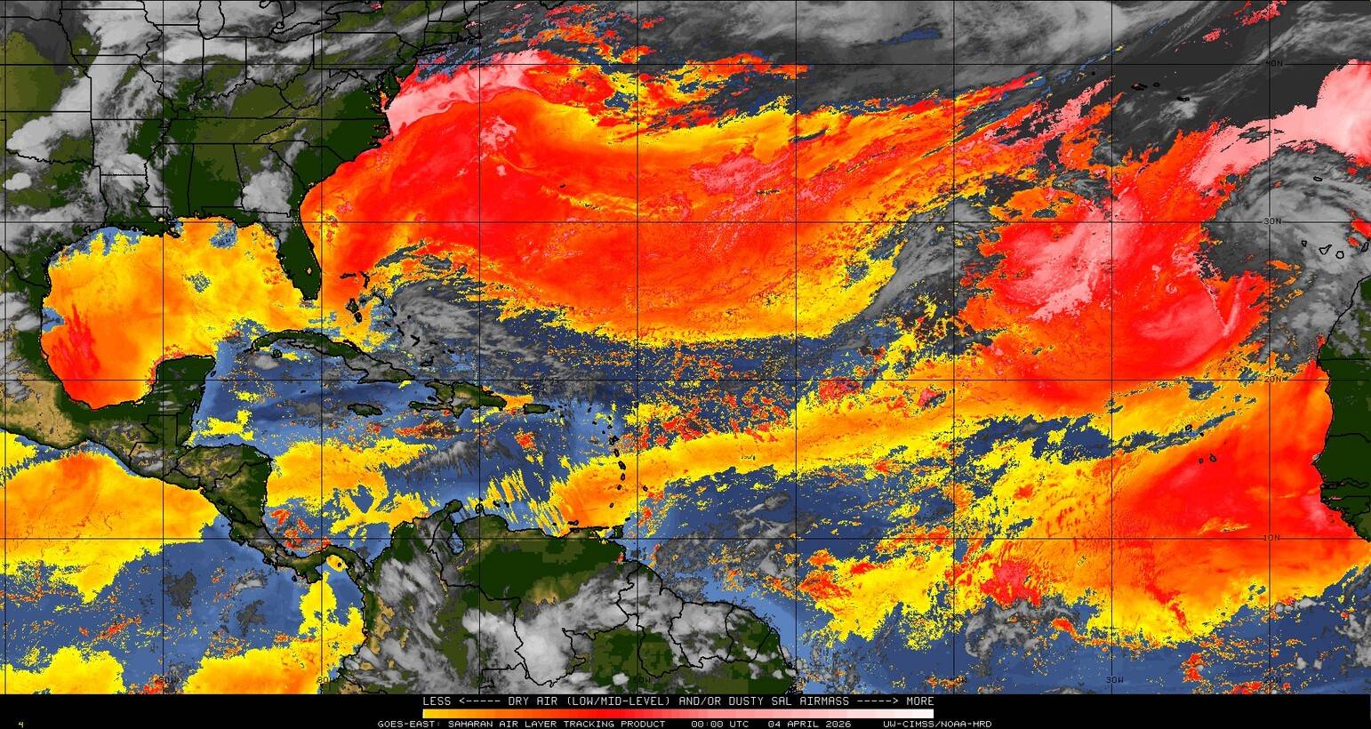 Il n’y a pas de cyclone ni de système surveillé par le NHC en Atlantique. Nous ne sommes pas actuellement en période cyclonique