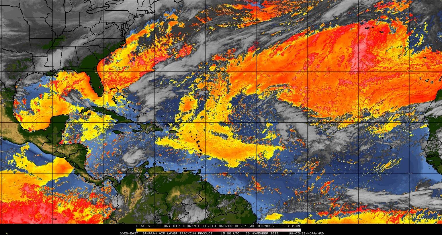 Il n’y a pas de cyclone ni de système surveillé par le NHC en Atlantique.