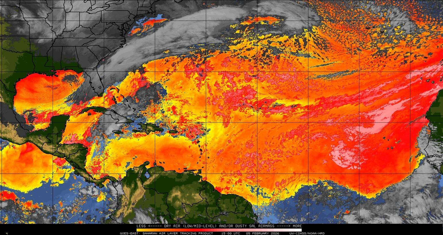 Il n’y a pas de cyclone ni de système surveillé par le NHC en Atlantique. Nous ne sommes pas actuellement en période cyclonique