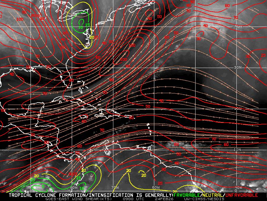 Il n’y a pas de cyclone ni de système surveillé par le NHC en Atlantique. Nous ne sommes pas actuellement en période cyclonique