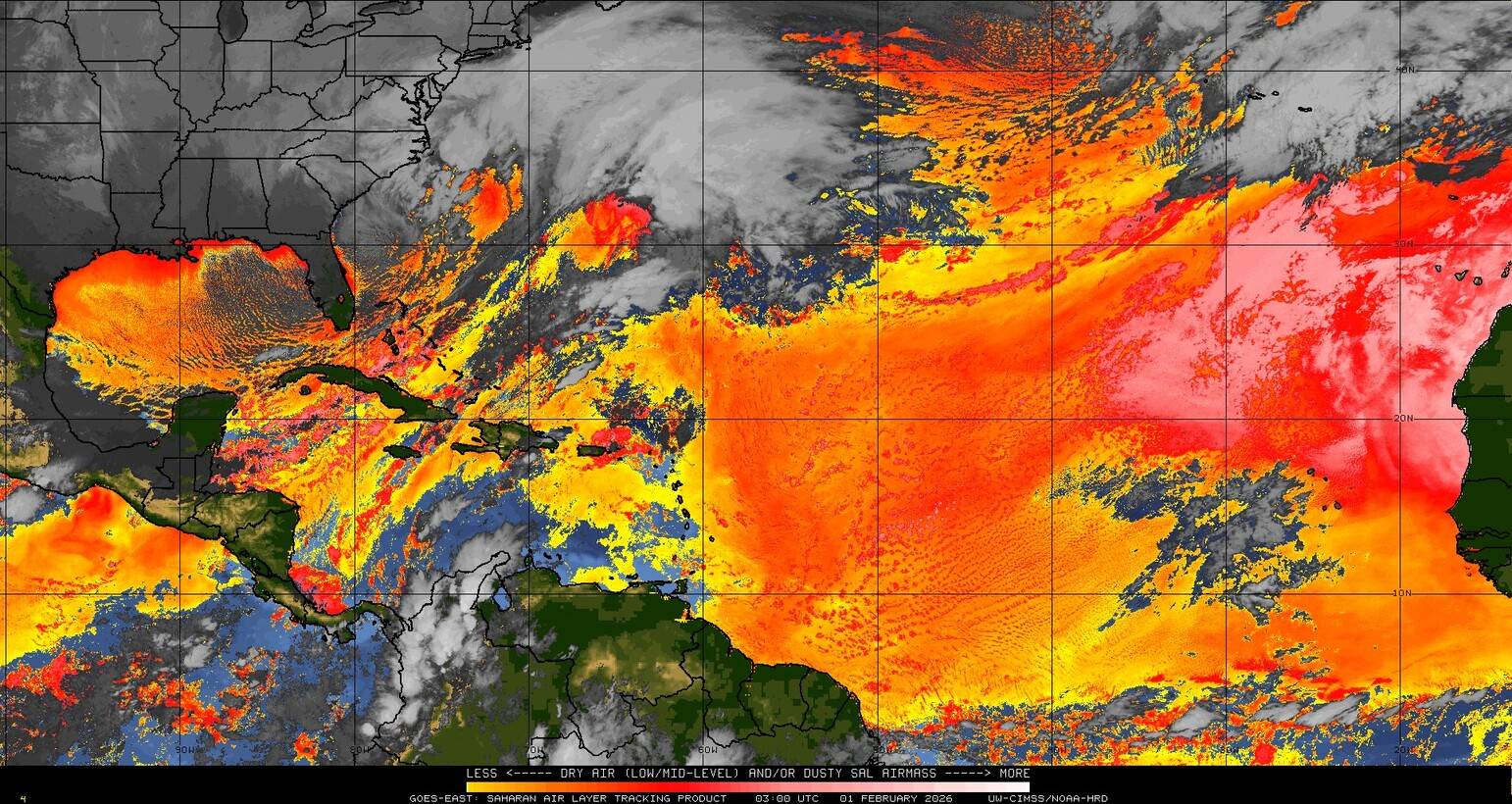 Il n’y a pas de cyclone ni de système surveillé par le NHC en Atlantique. Nous ne sommes pas actuellement en période cyclonique