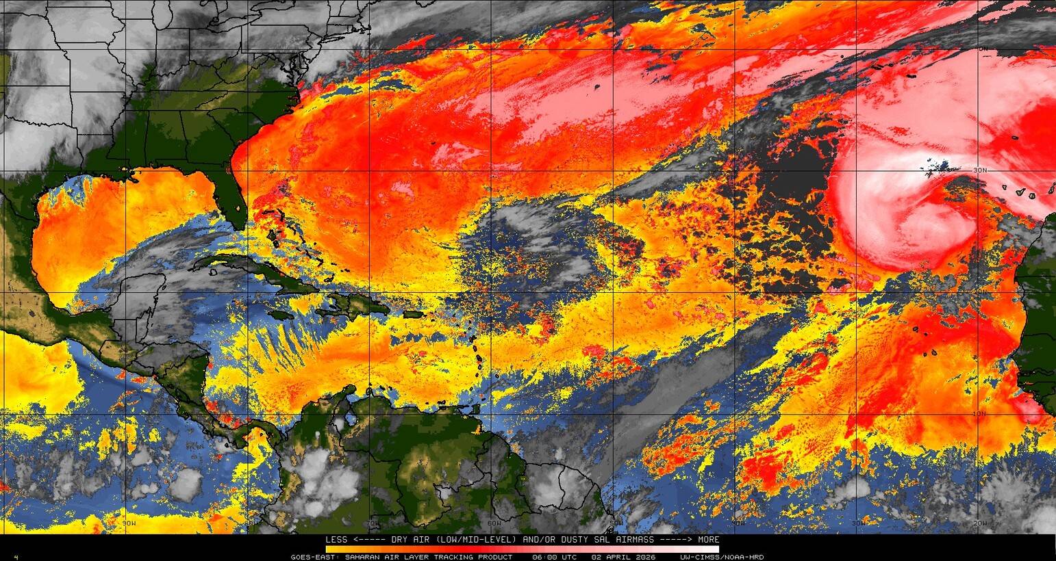 Il n’y a pas de cyclone ni de système surveillé par le NHC en Atlantique. Nous ne sommes pas actuellement en période cyclonique