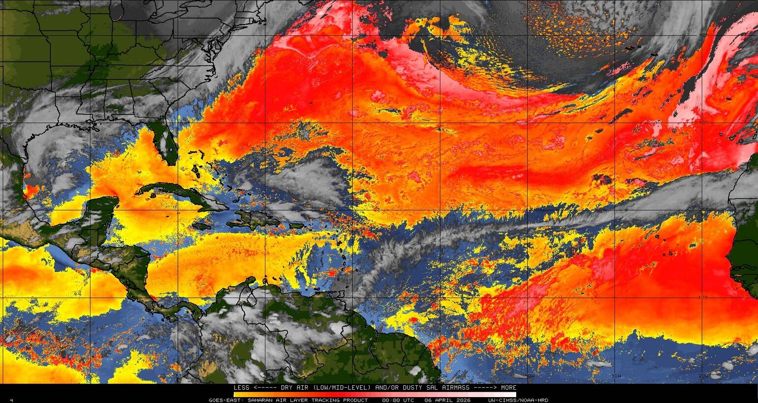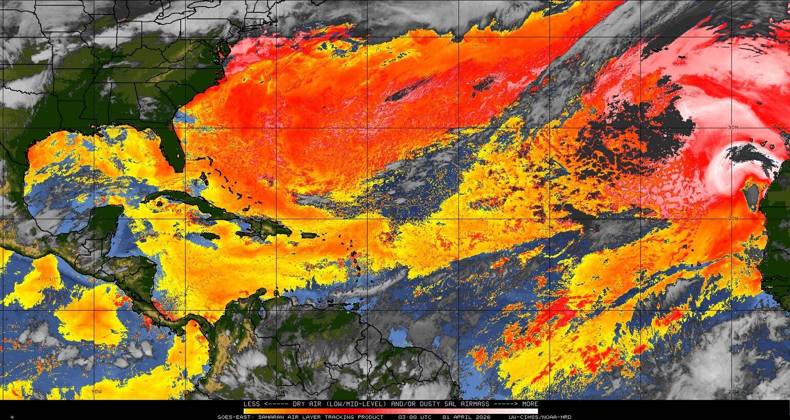 Il n’y a pas de cyclone ni de système surveillé par le NHC en Atlantique. Nous ne sommes pas actuellement en période cyclonique