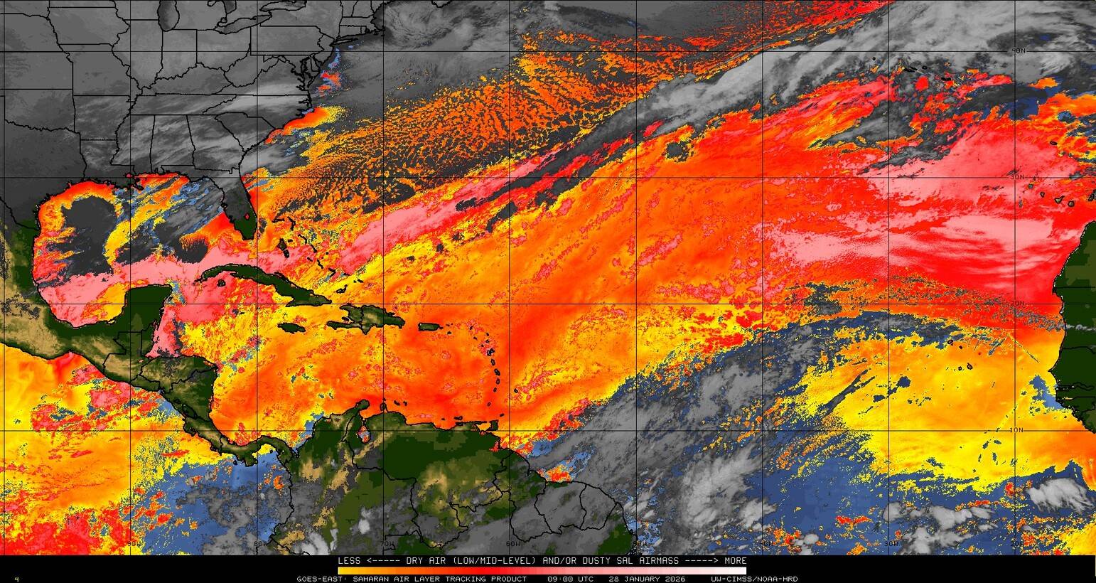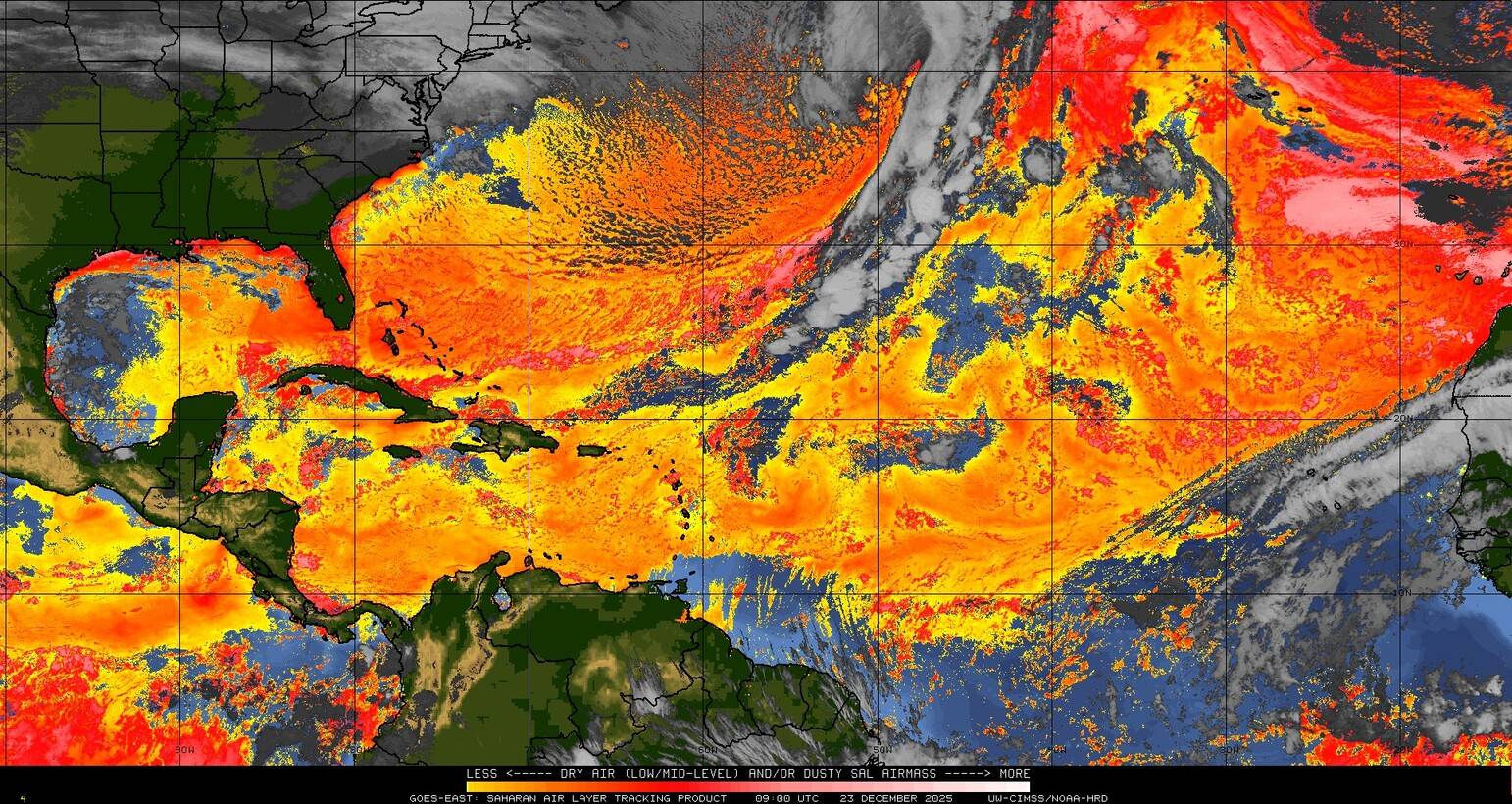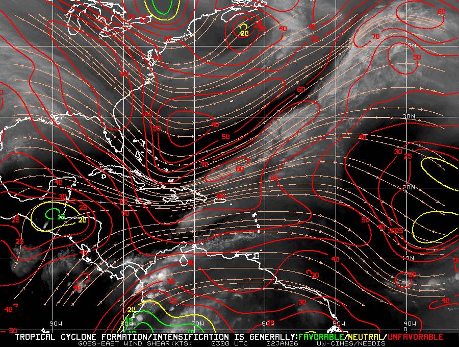 Il n’y a pas de cyclone ni de système surveillé par le NHC en Atlantique. Nous ne sommes pas actuellement en période cyclonique