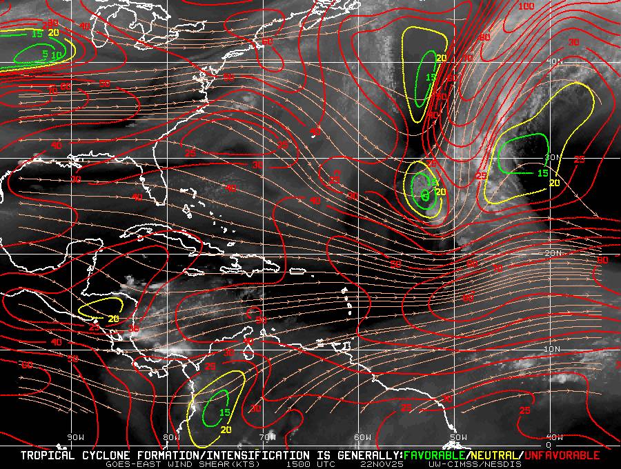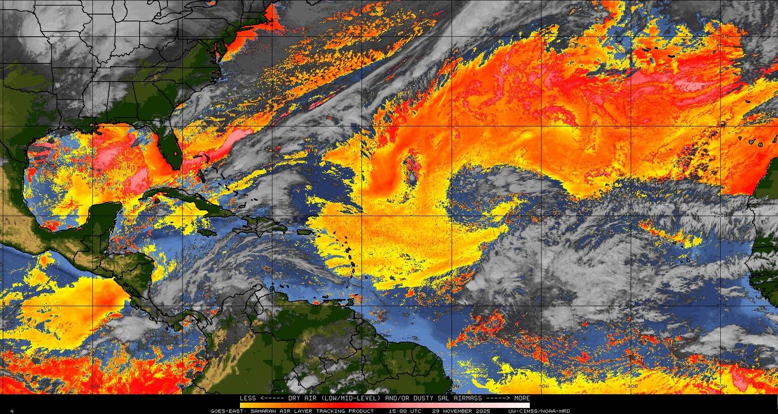 Il n’y a pas de cyclone ni de système surveillé par le NHC en Atlantique.
