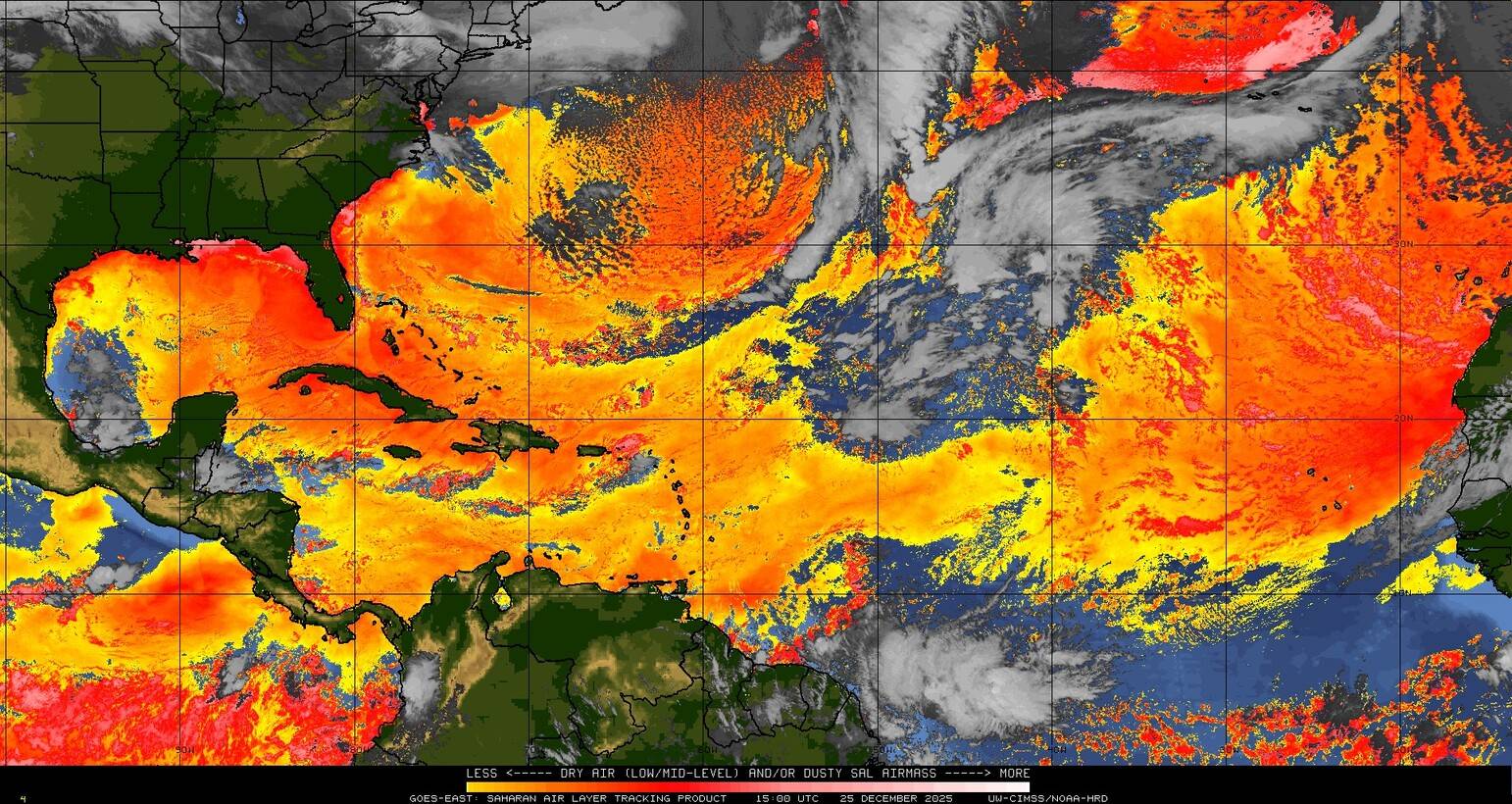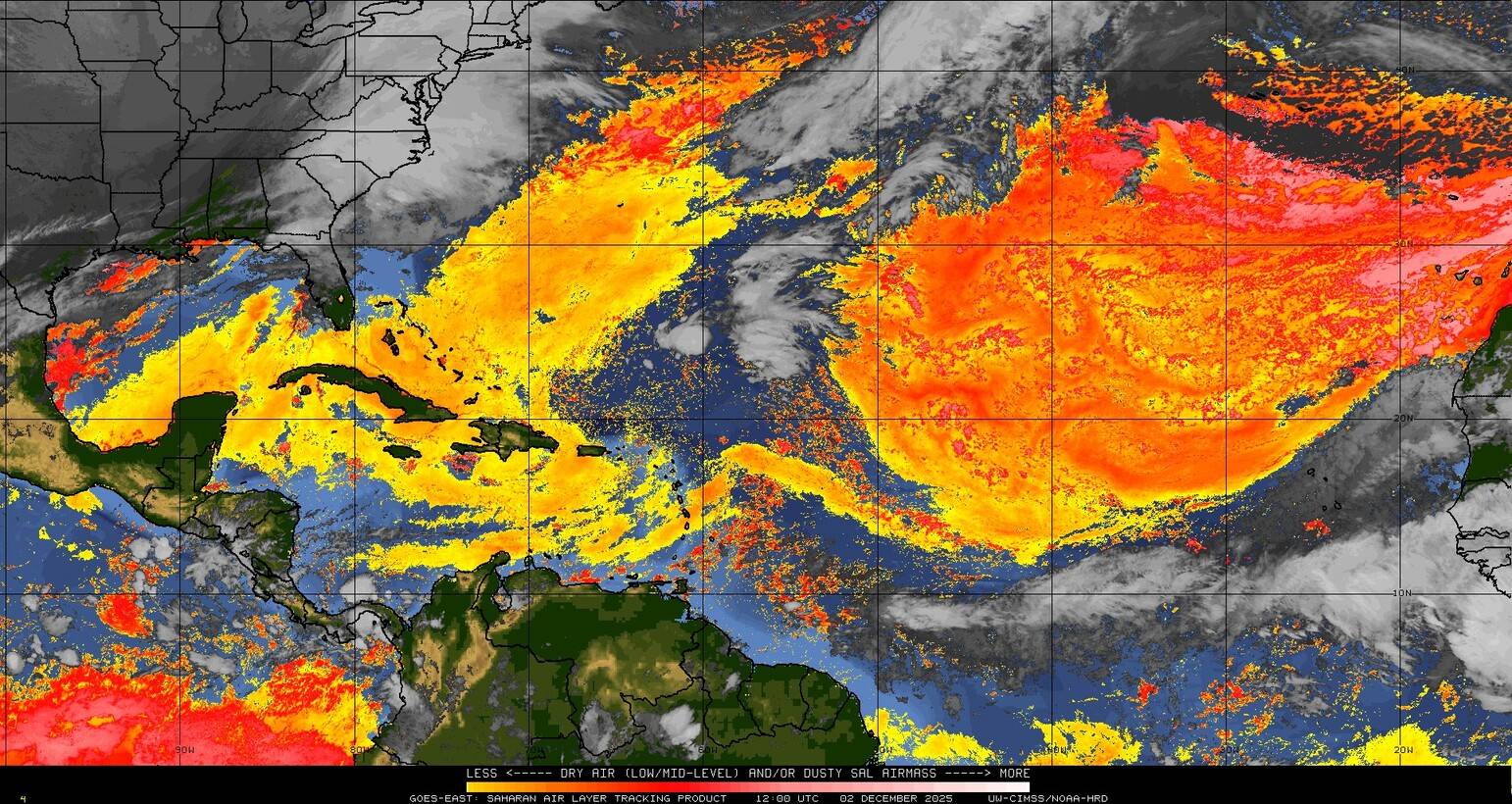 Il n’y a pas de cyclone ni de système surveillé par le NHC en Atlantique. Nous ne sommes pas actuellement en période cyclonique