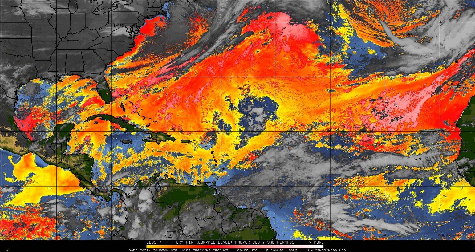 Il n’y a pas de cyclone ni de système surveillé par le NHC en Atlantique. Nous ne sommes pas actuellement en période cyclonique