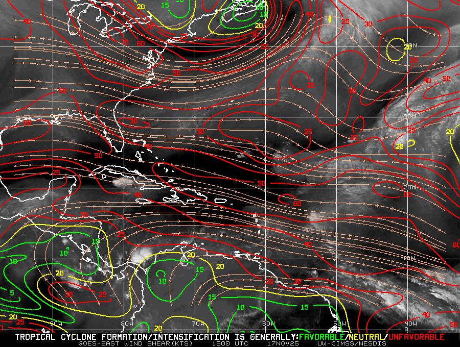 Il n’y a pas de cyclone ni de système surveillé par le NHC en Atlantique.