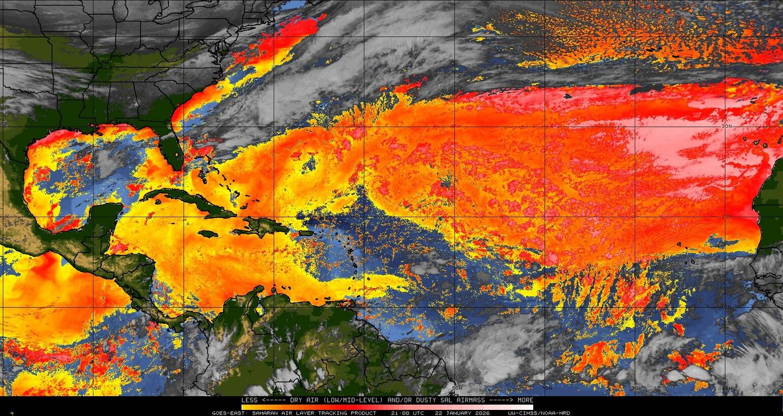 Il n’y a pas de cyclone ni de système surveillé par le NHC en Atlantique. Nous ne sommes pas actuellement en période cyclonique