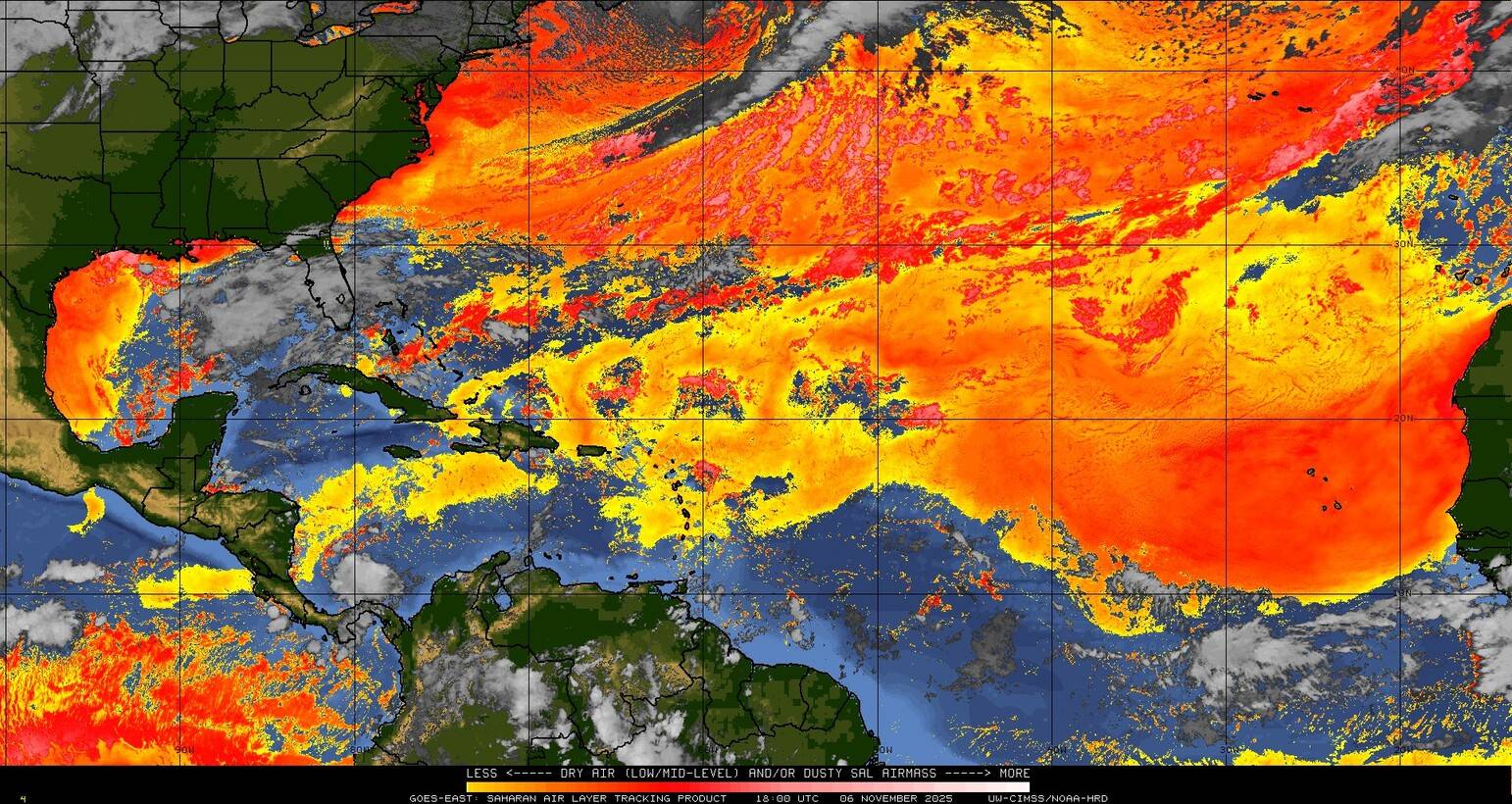 Il n’y a pas de cyclone ni de système surveillé par le NHC en Atlantique.