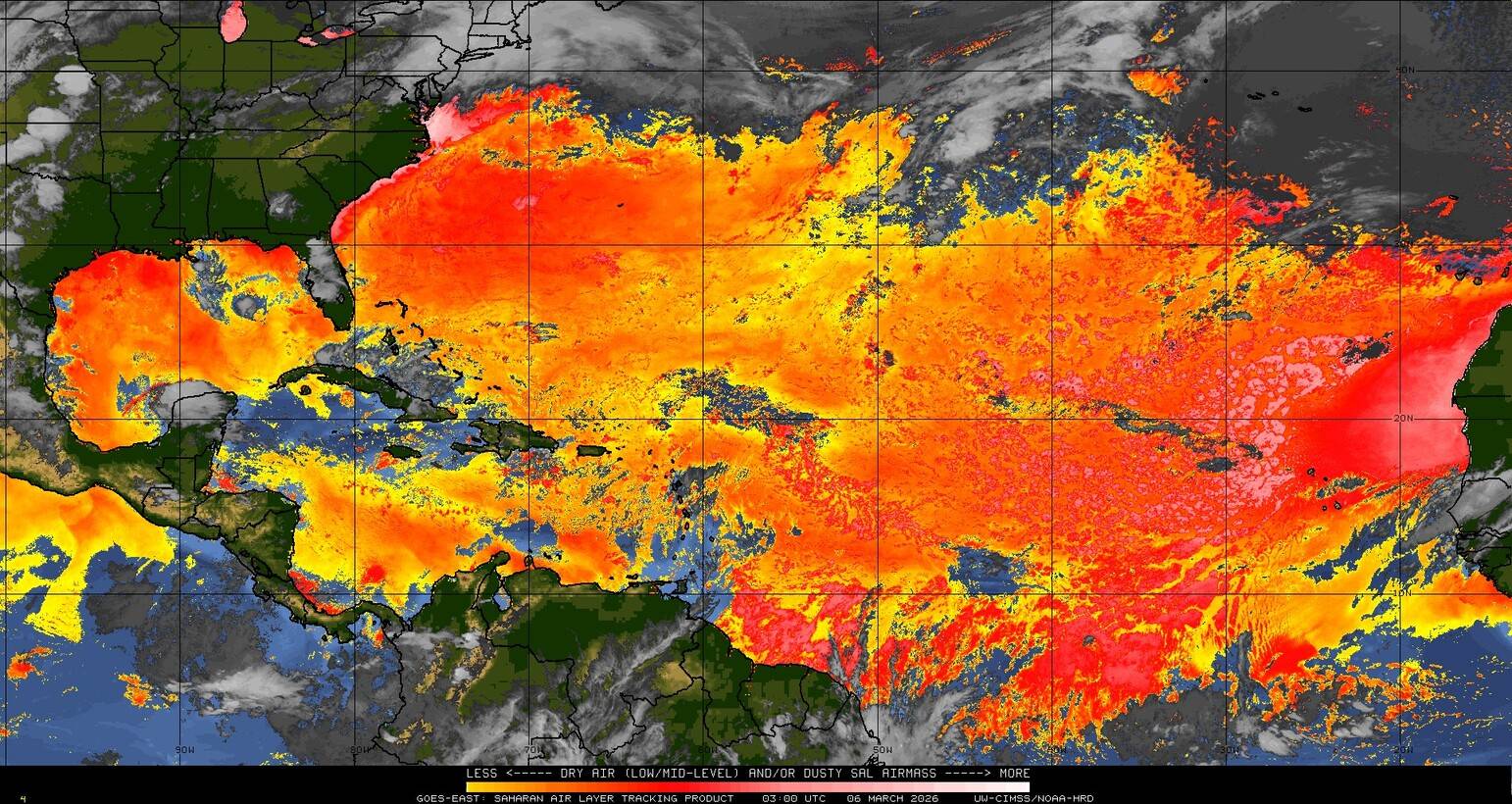 Il n’y a pas de cyclone ni de système surveillé par le NHC en Atlantique. Nous ne sommes pas actuellement en période cyclonique