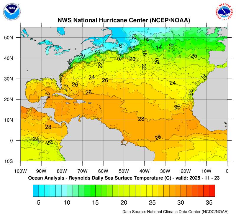 Il n’y a pas de cyclone ni de système surveillé par le NHC en Atlantique.