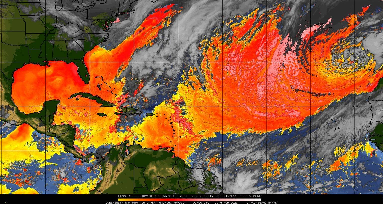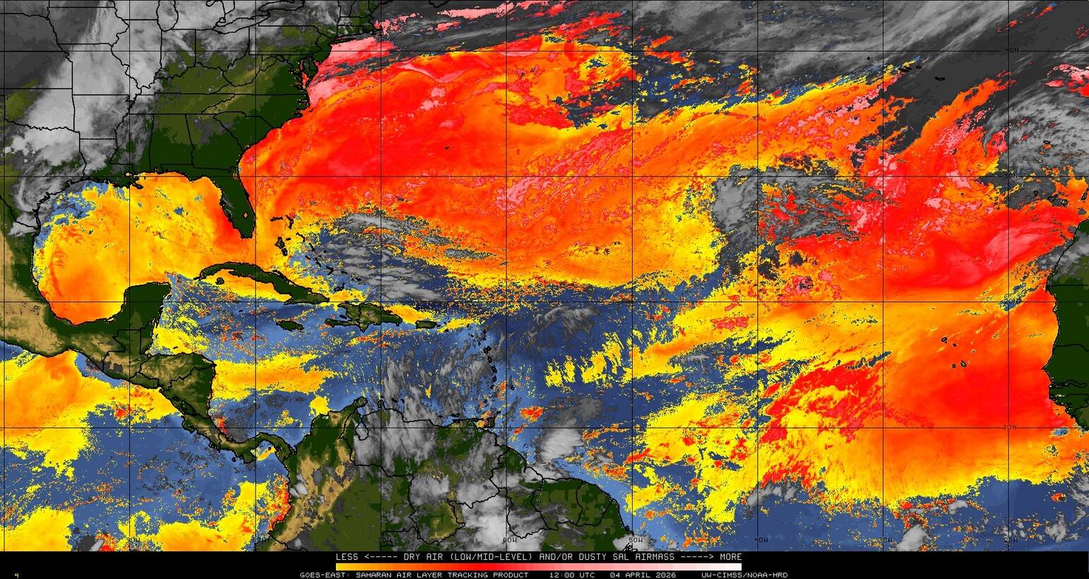 Il n’y a pas de cyclone ni de système surveillé par le NHC en Atlantique. Nous ne sommes pas actuellement en période cyclonique